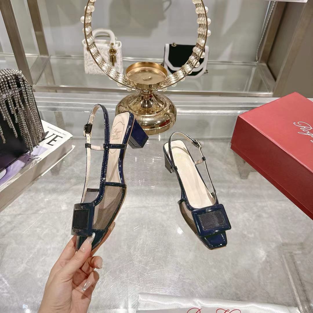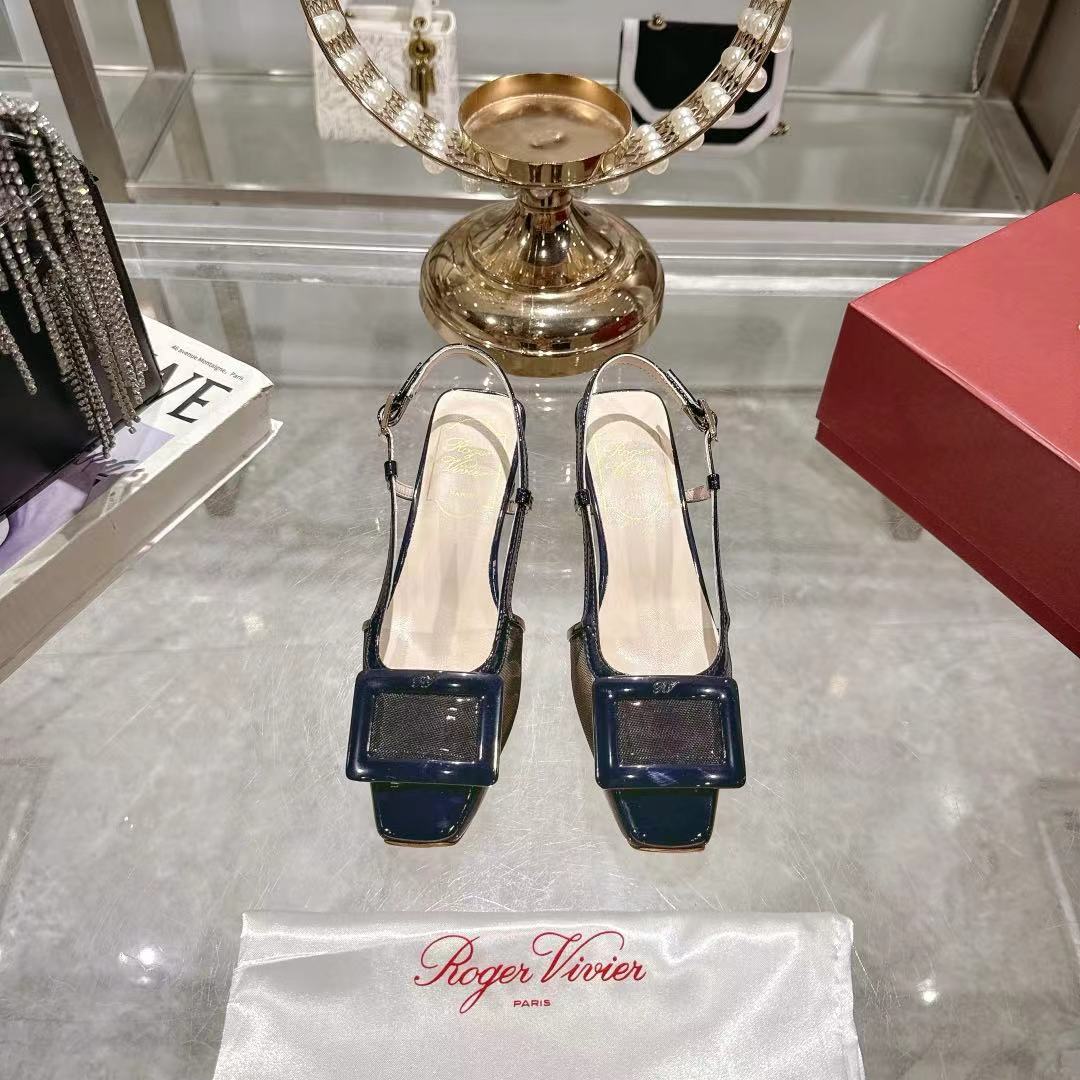 Viv 25 Slingback Navy Blue Mesh Italian Leather 300781
