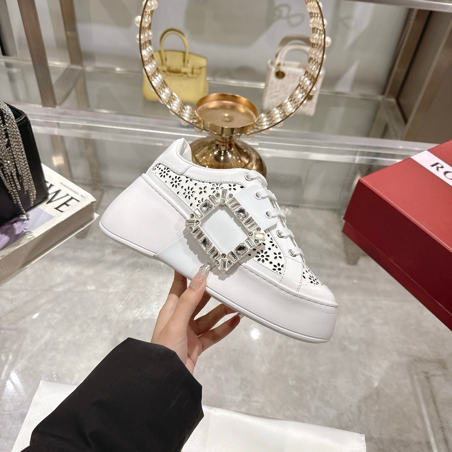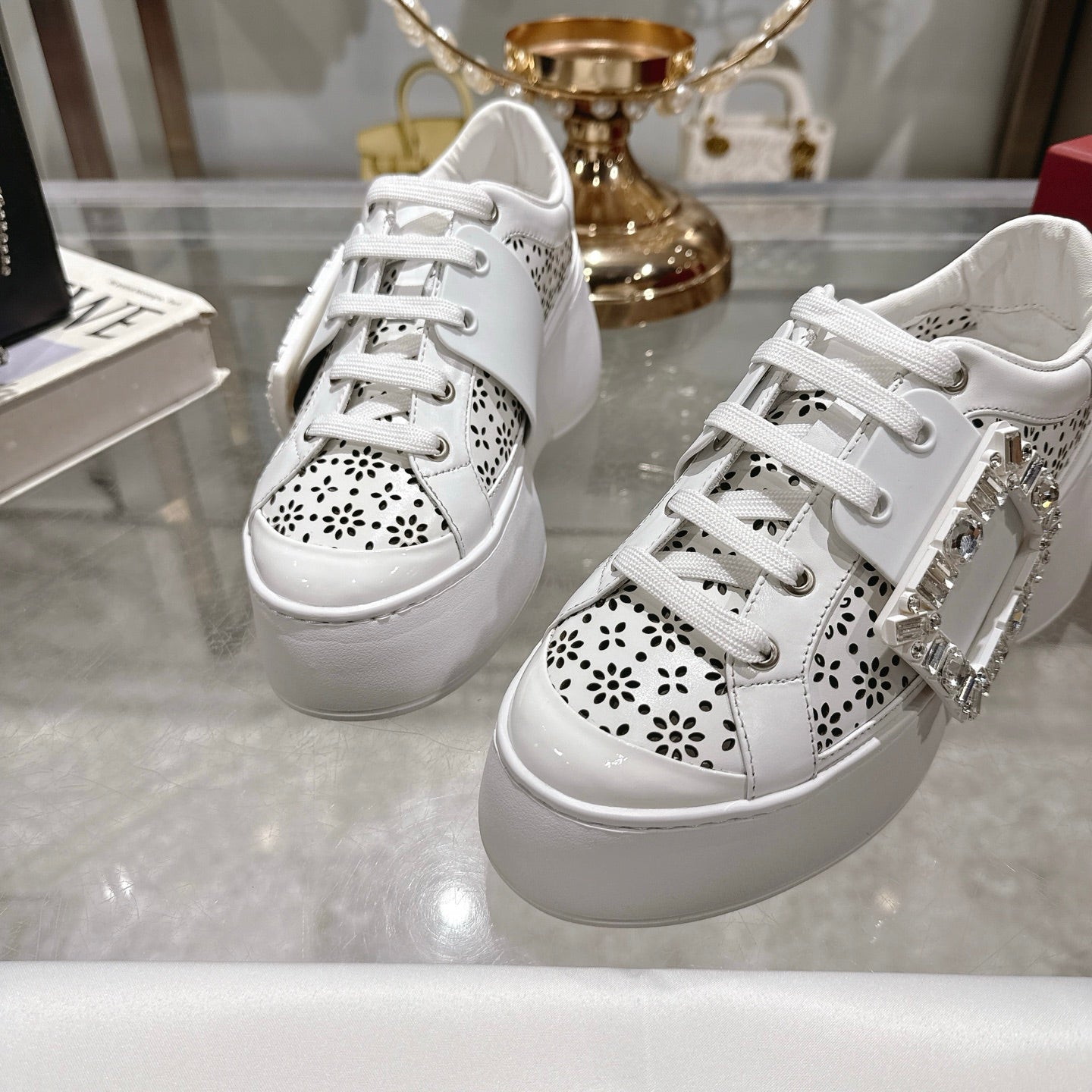 Viv 25 Square Buckle Platform White Cowhide 262981