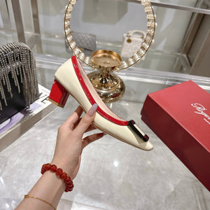 Viv Trompette Thick Heel Pumps White Cowhide Leather 283048