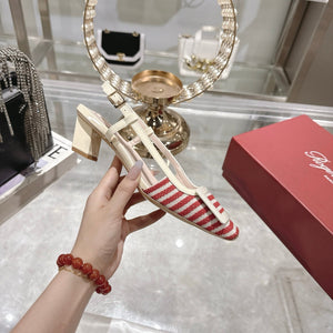 Viv 25 Sling Back Red Floral Cloth Leather 355487