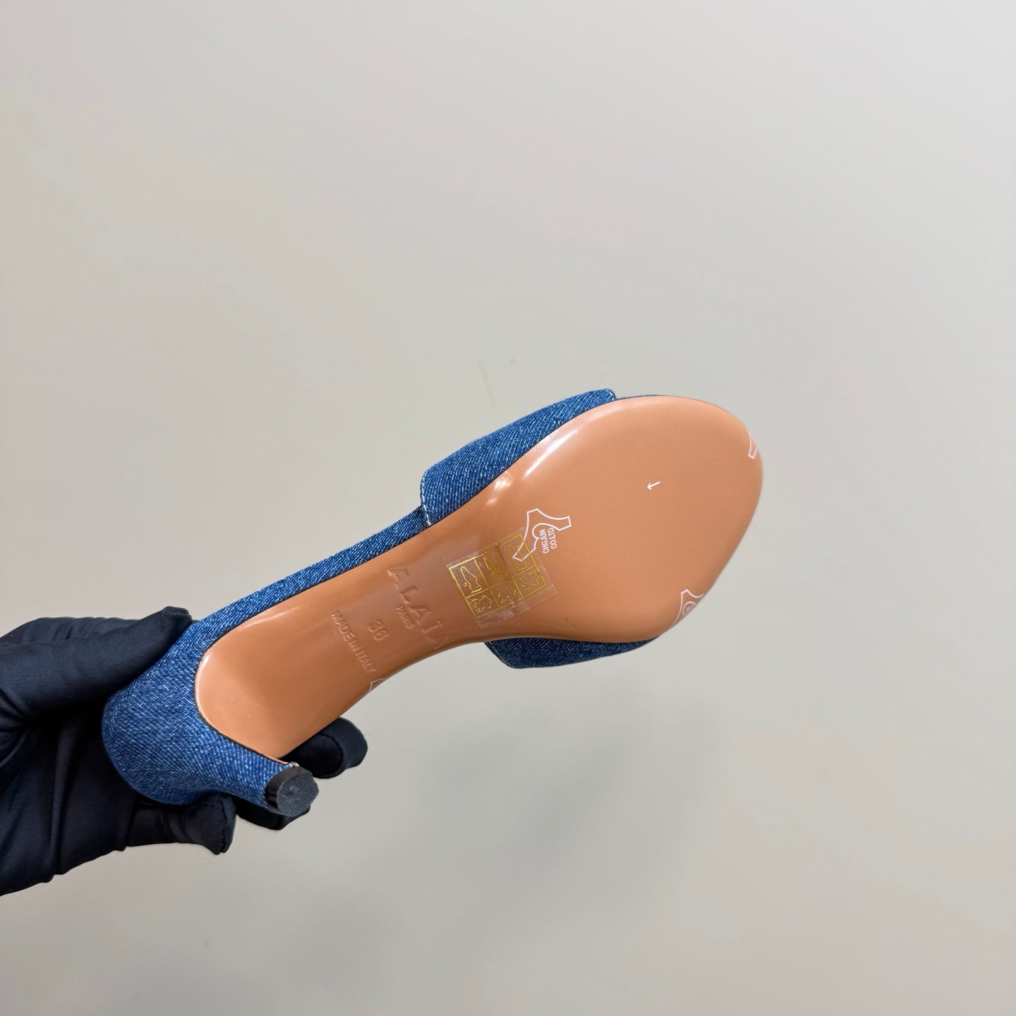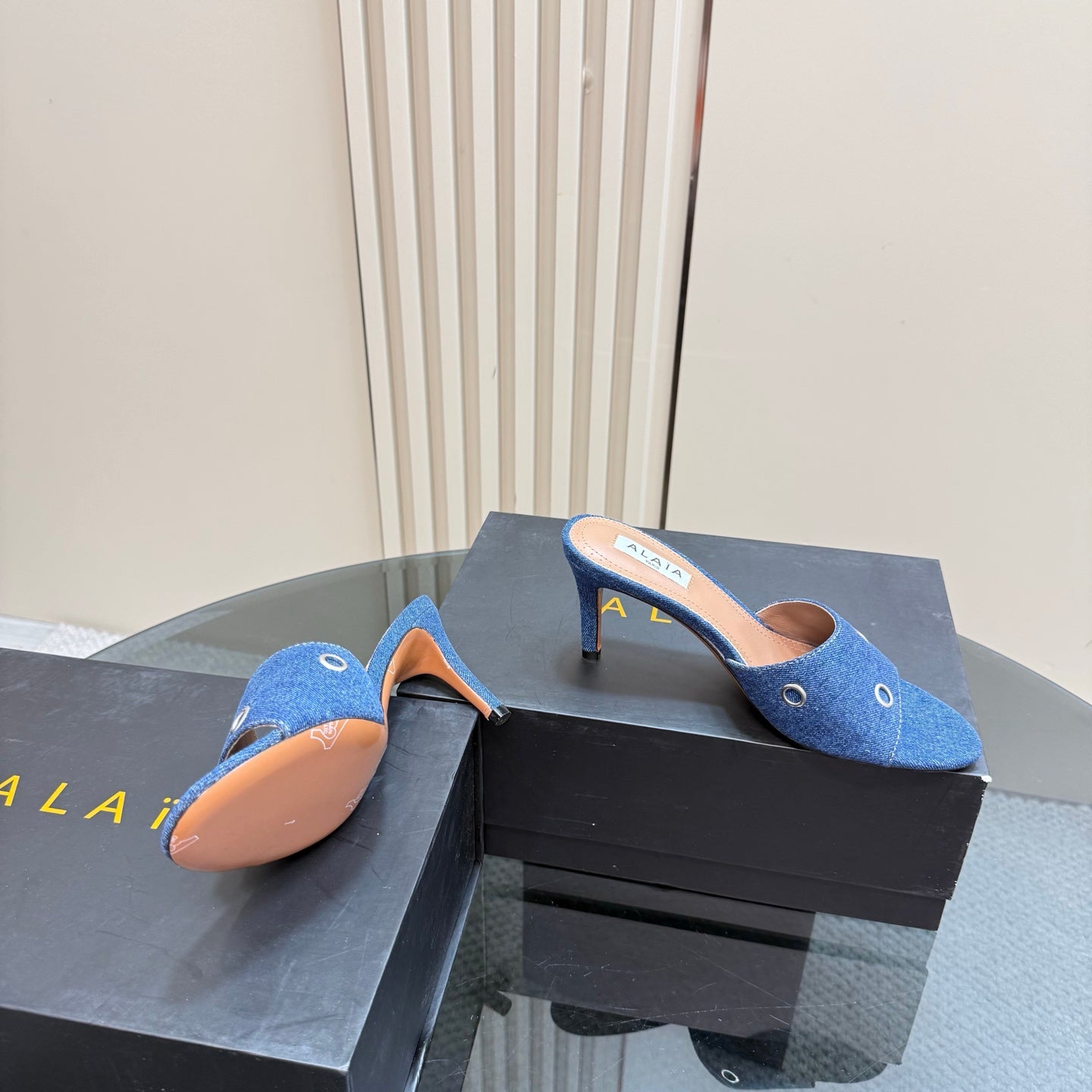 Alaia 2025 Oeillets Embellished Leather Sandals Denim Lambskin 299670