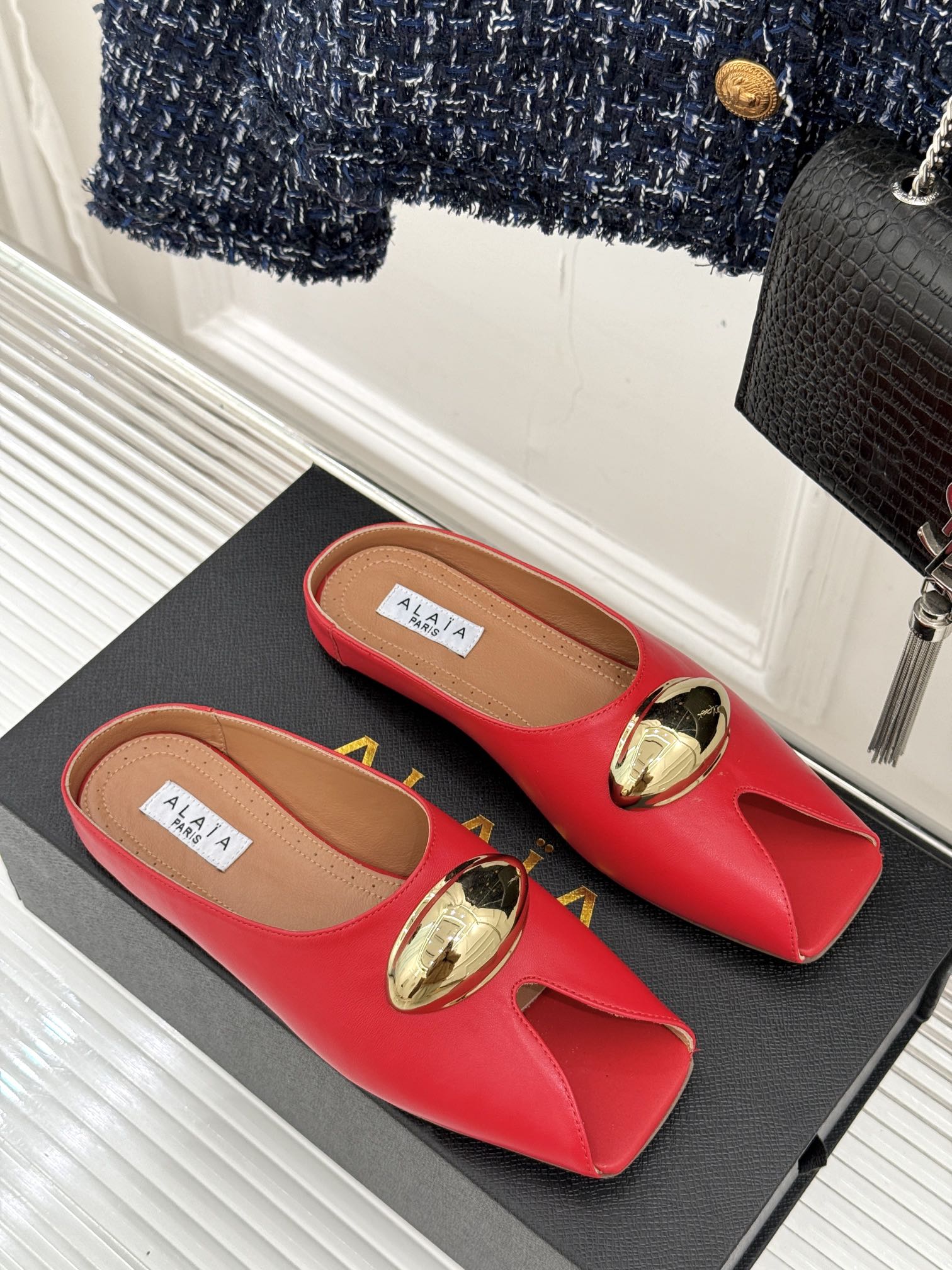 Alaia Slipper With Gold Hardware Red Calfskin 293197