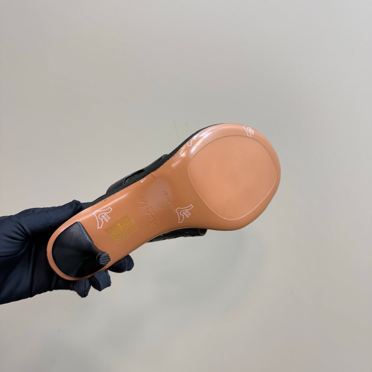 Alaia Vienne Cutout Kitten-Heel Slide Sandals Black Sheepskin 299661