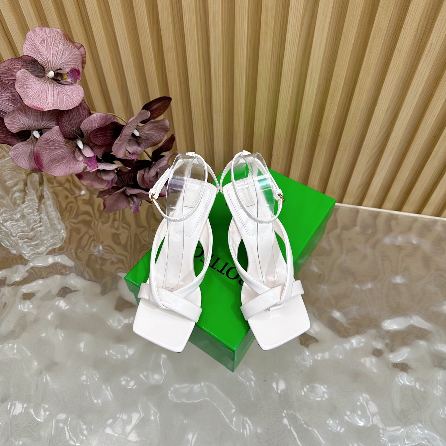 BV 25SS Flat-Soled High-Heeled Ankle Strap Sandals White Shiny Calfskin
