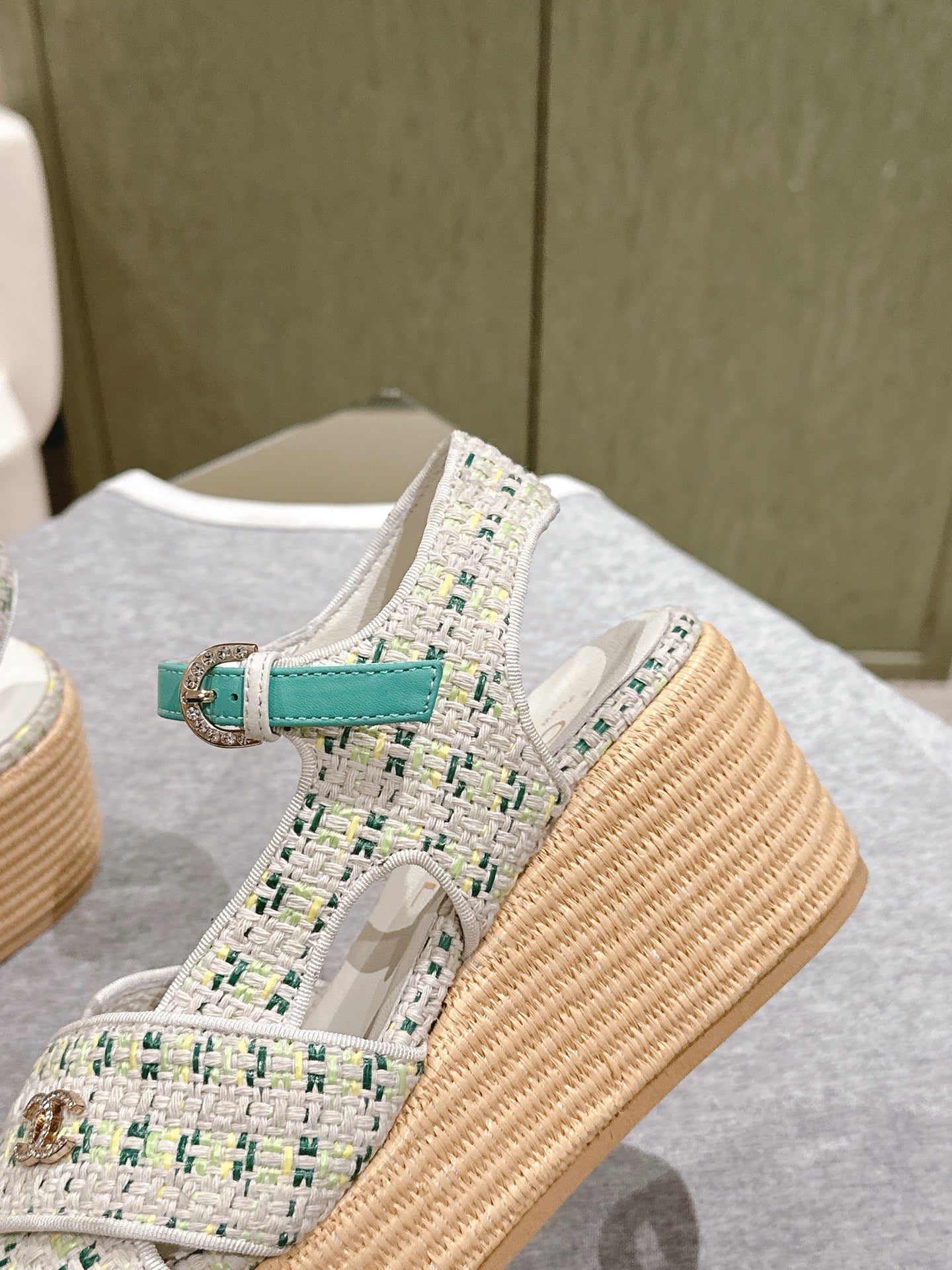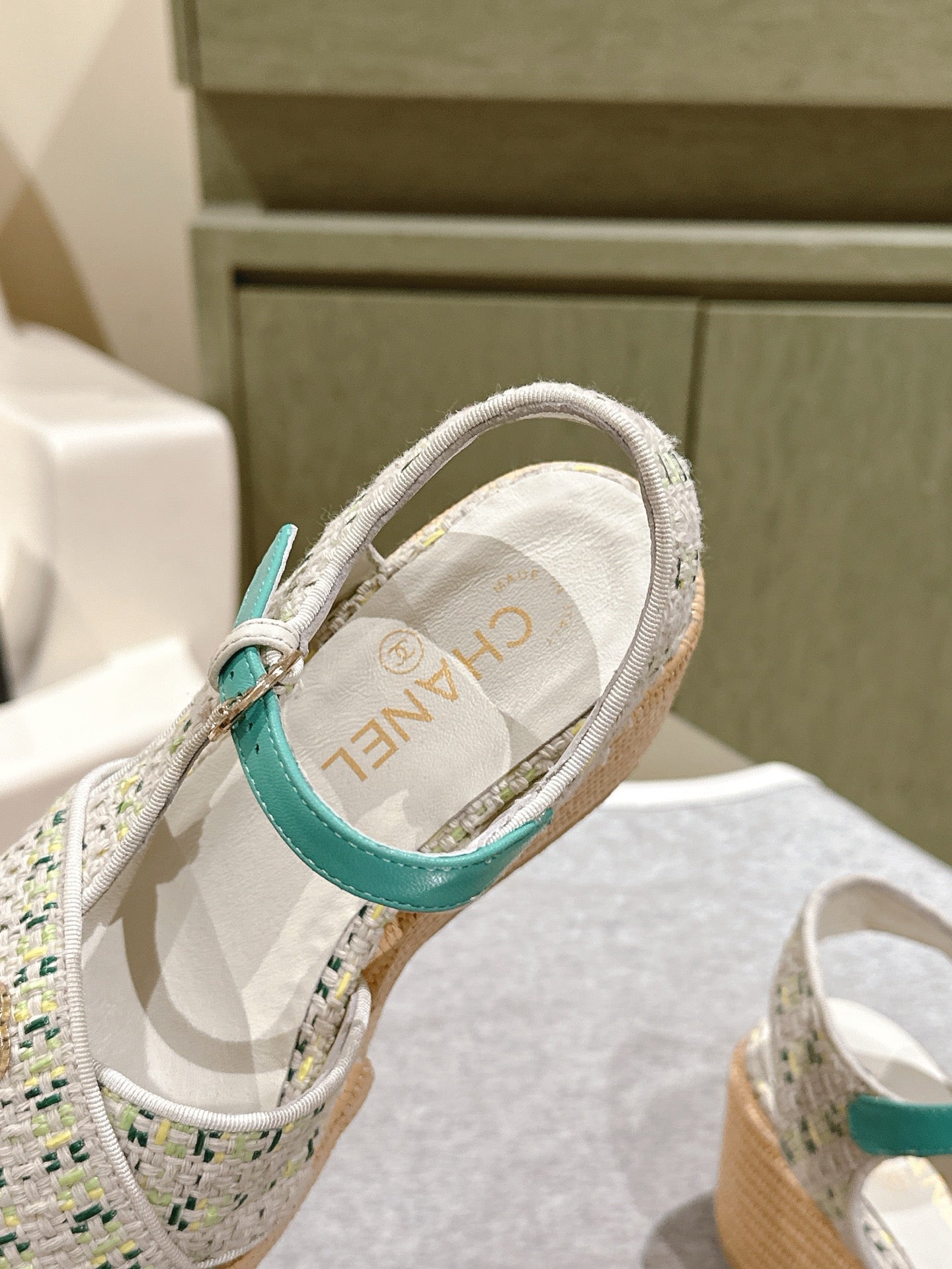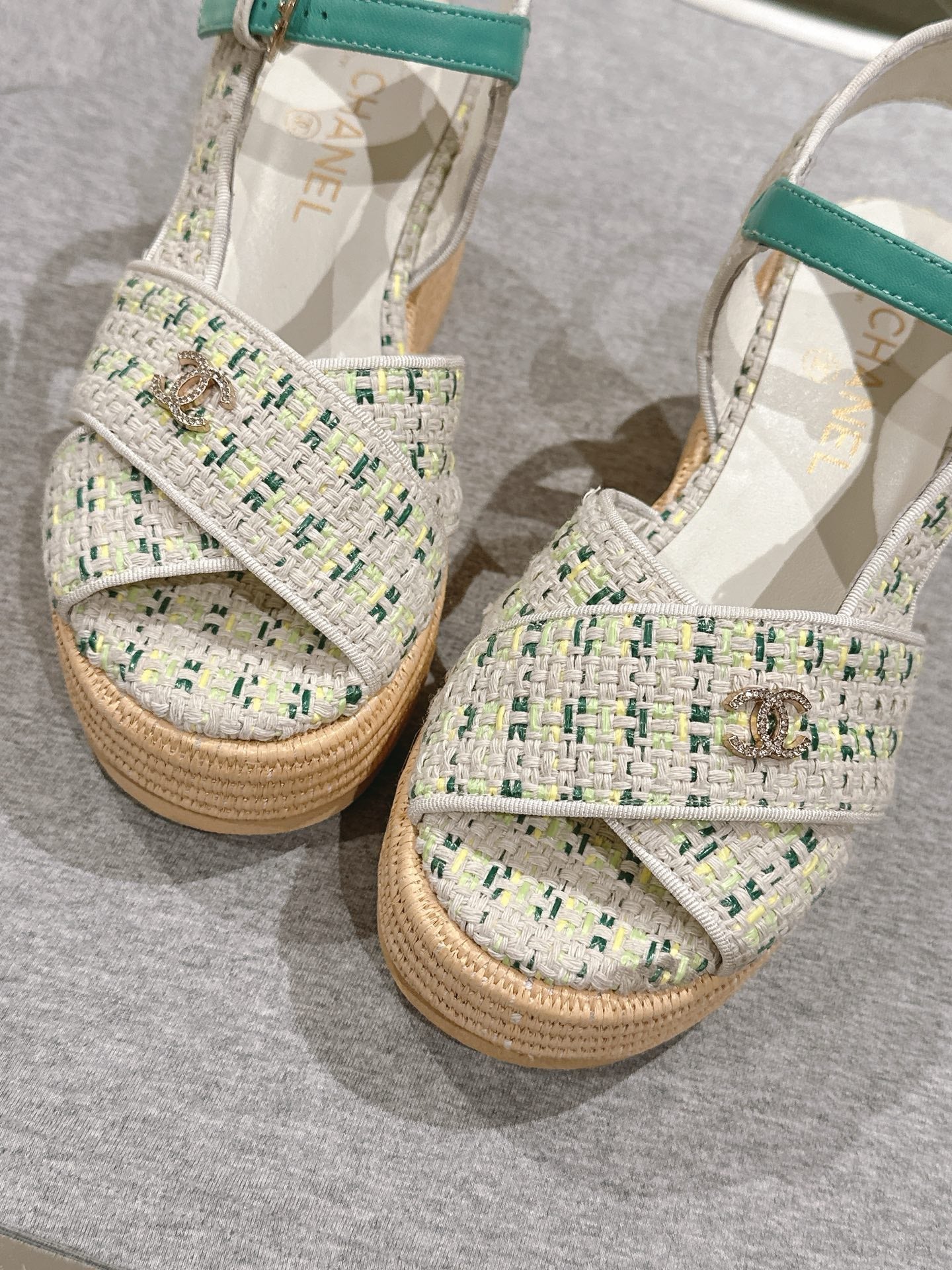 CC 25ss Espadrille Sandals 85mm Greenish-Blue Colorful Tweed Cowhide 462245
