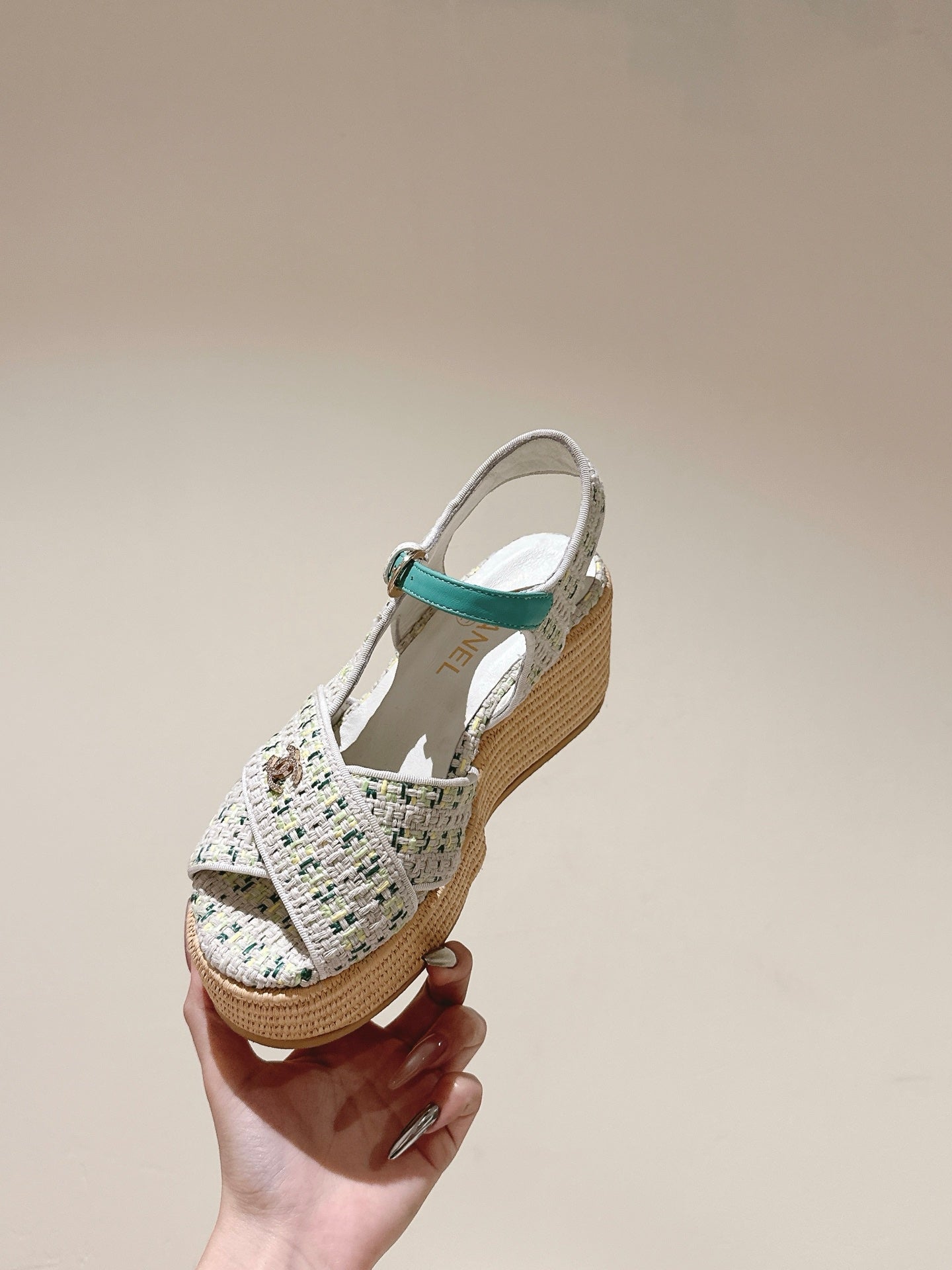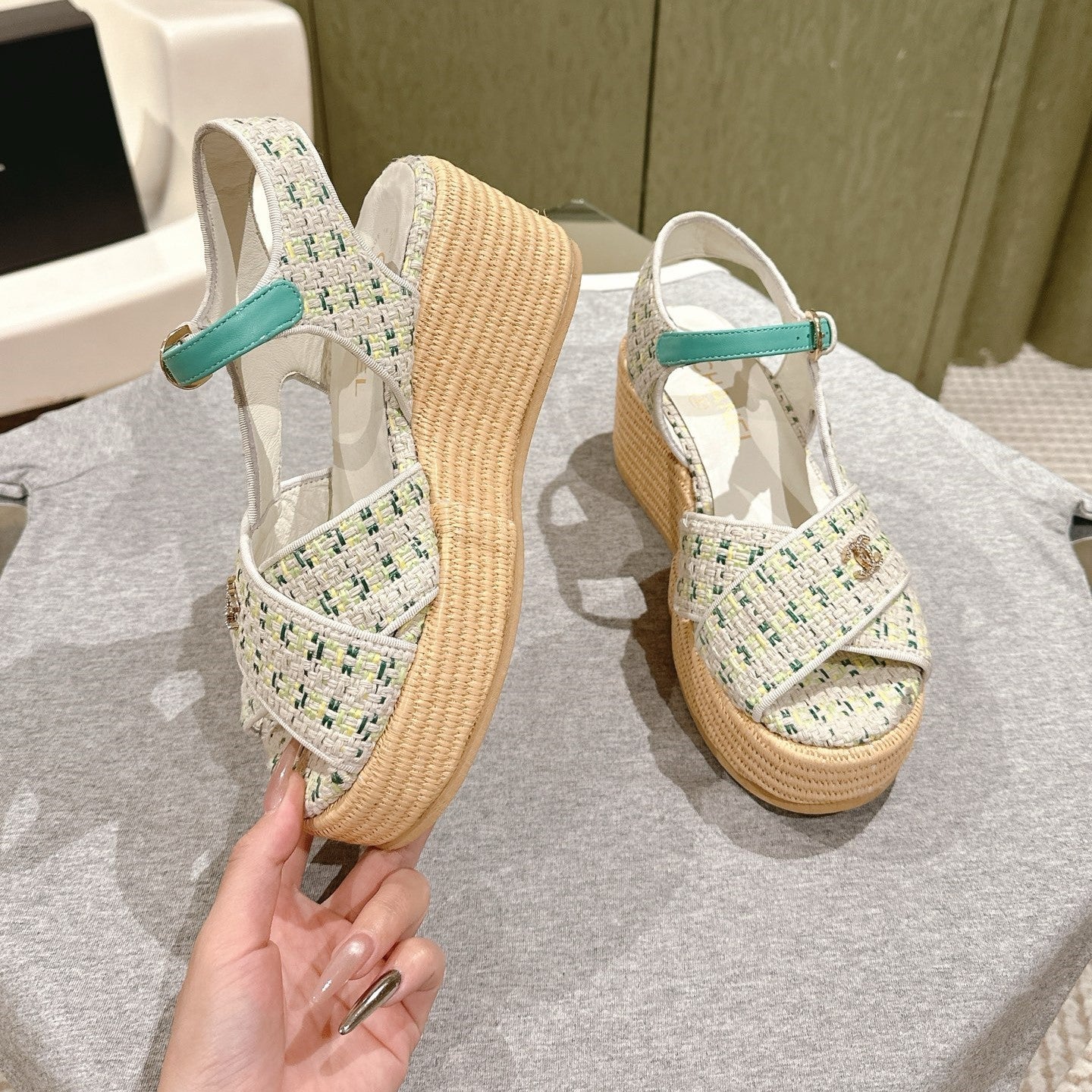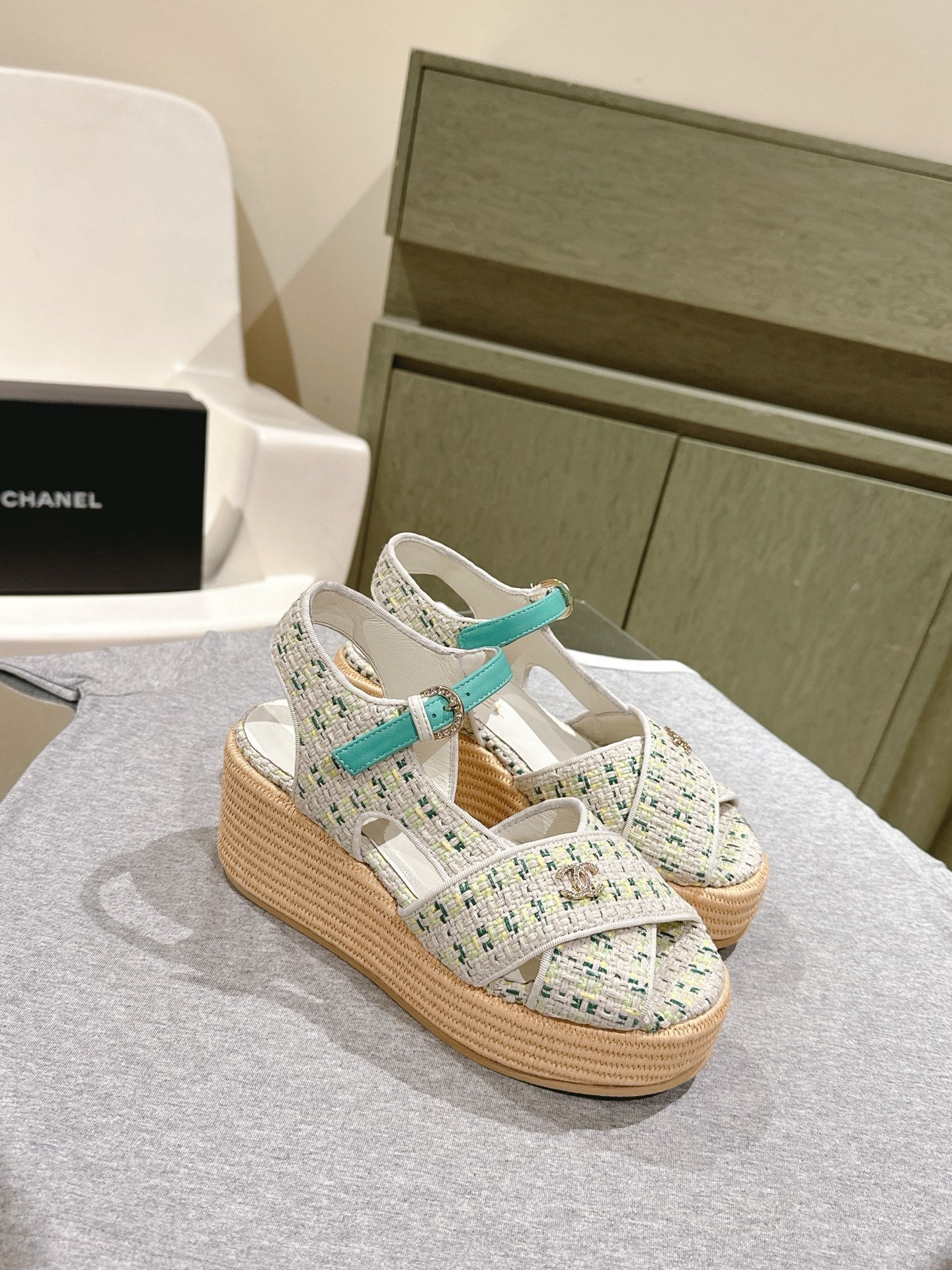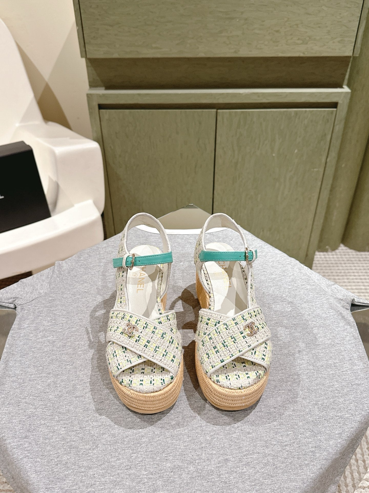 CC 25ss Espadrille Sandals 85mm Greenish-Blue Colorful Tweed Cowhide 462245