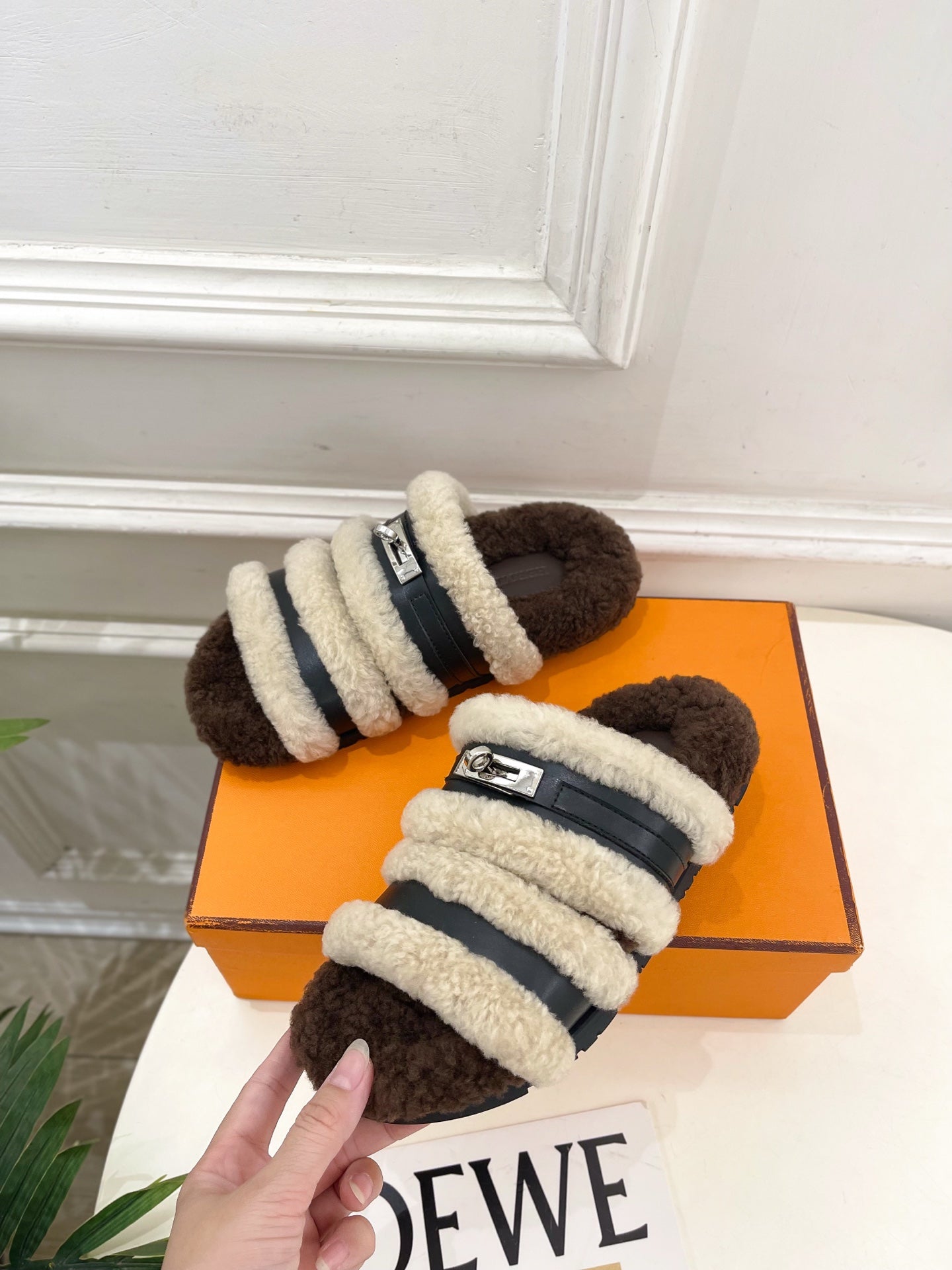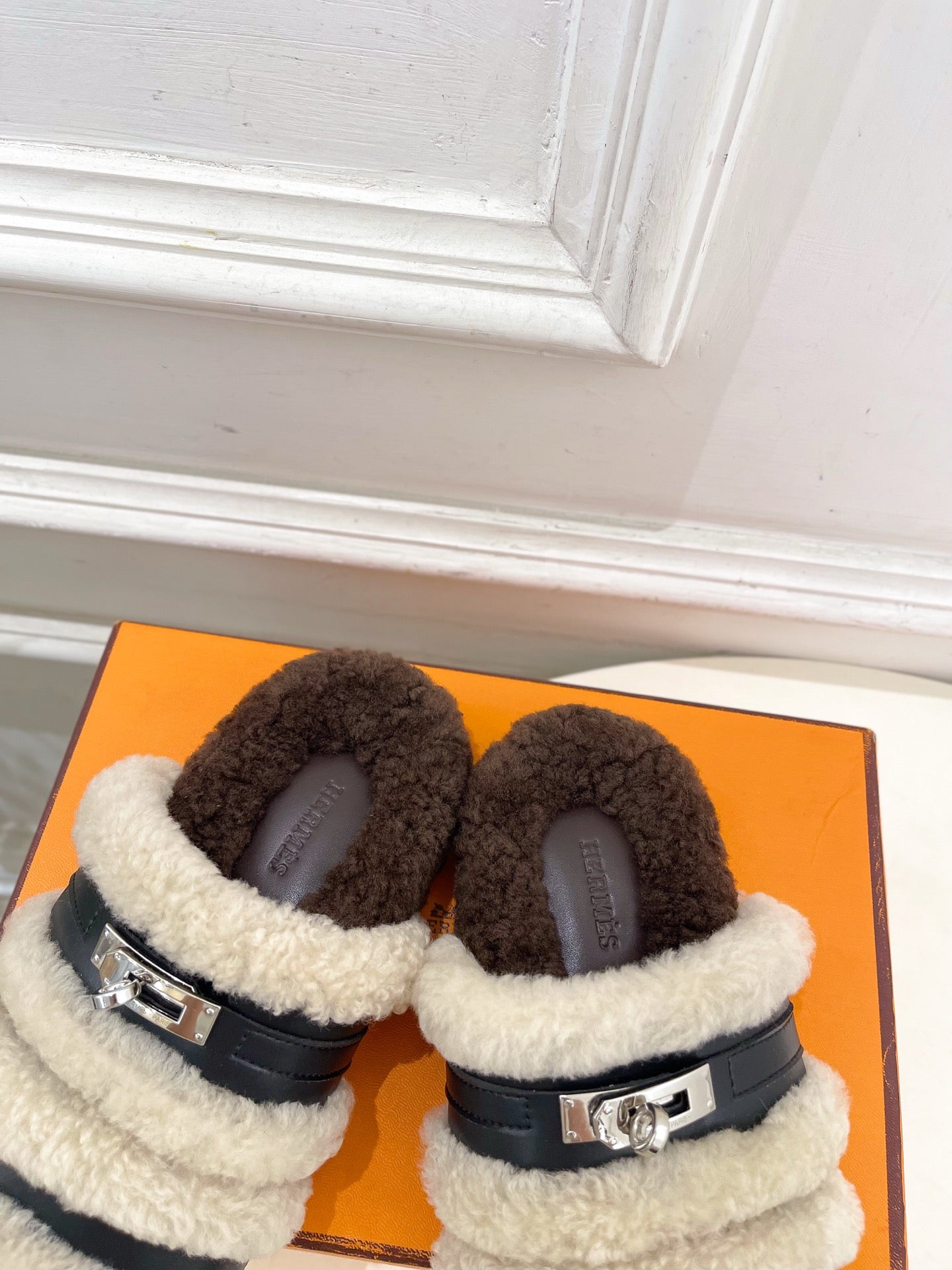 HM Slippers Classic Kelly Sliver Buckle Brown Black Wool