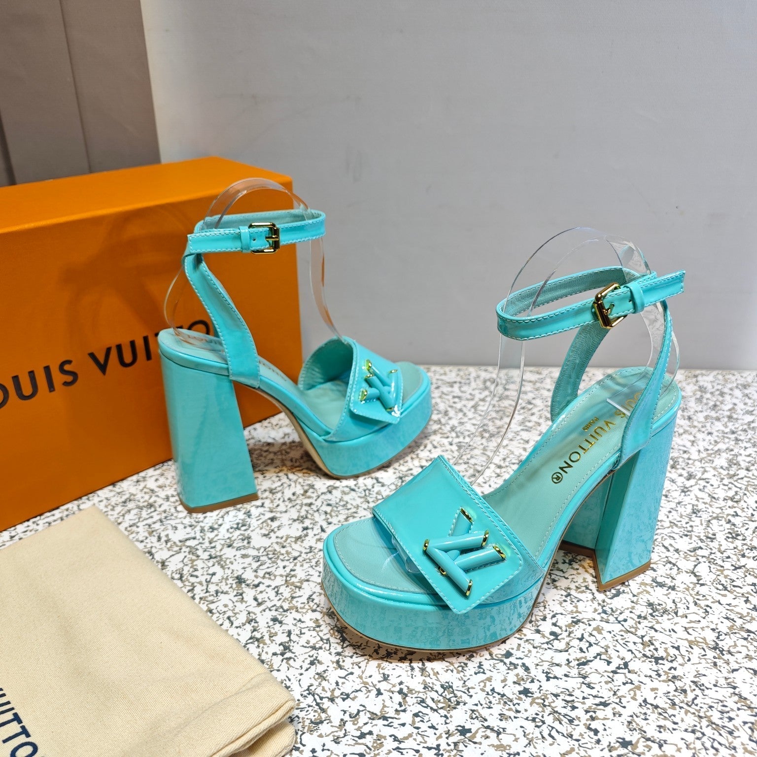 LV Shake Platform Sandal 110mm Turquoise Patent Leather 456138