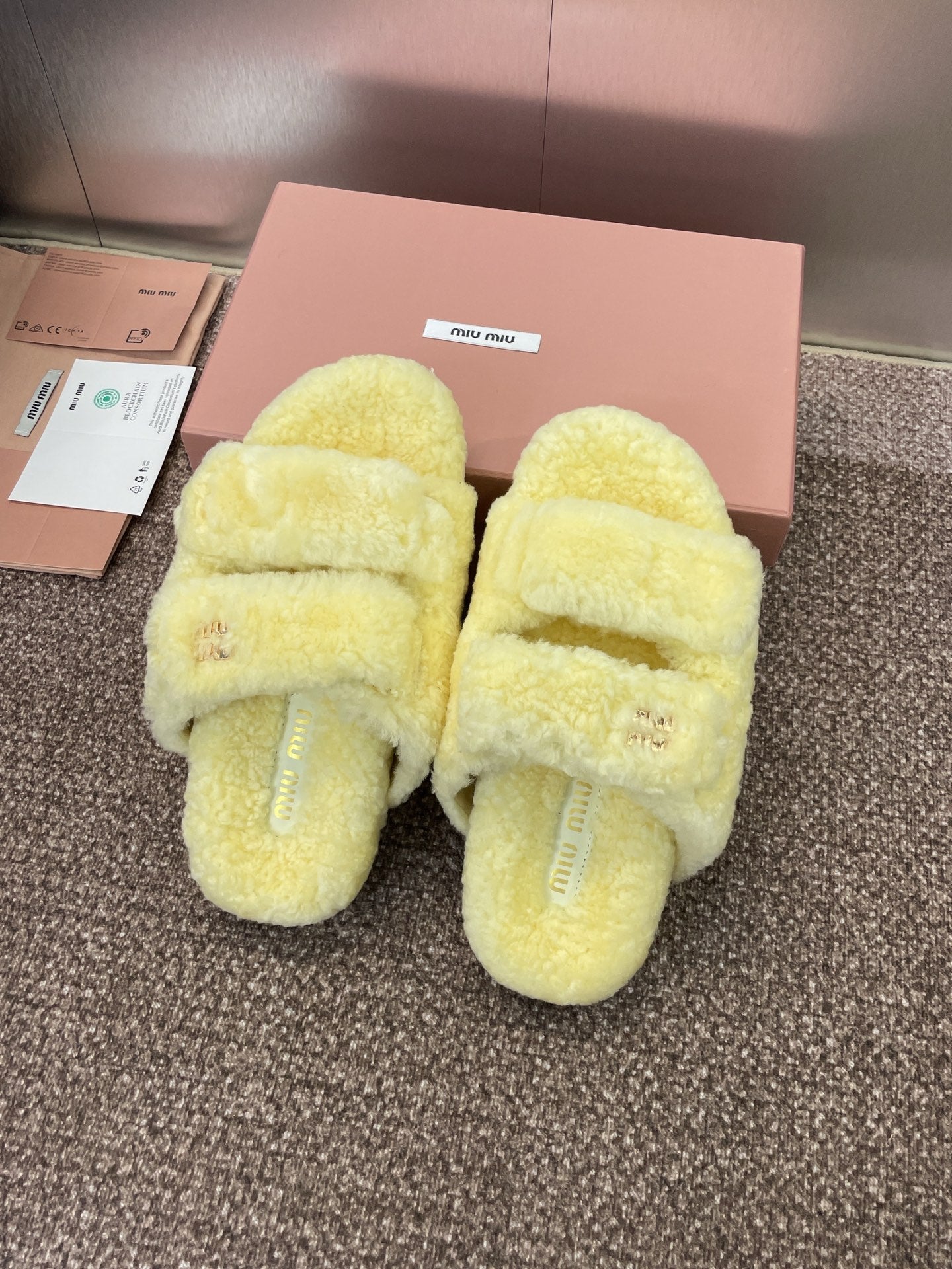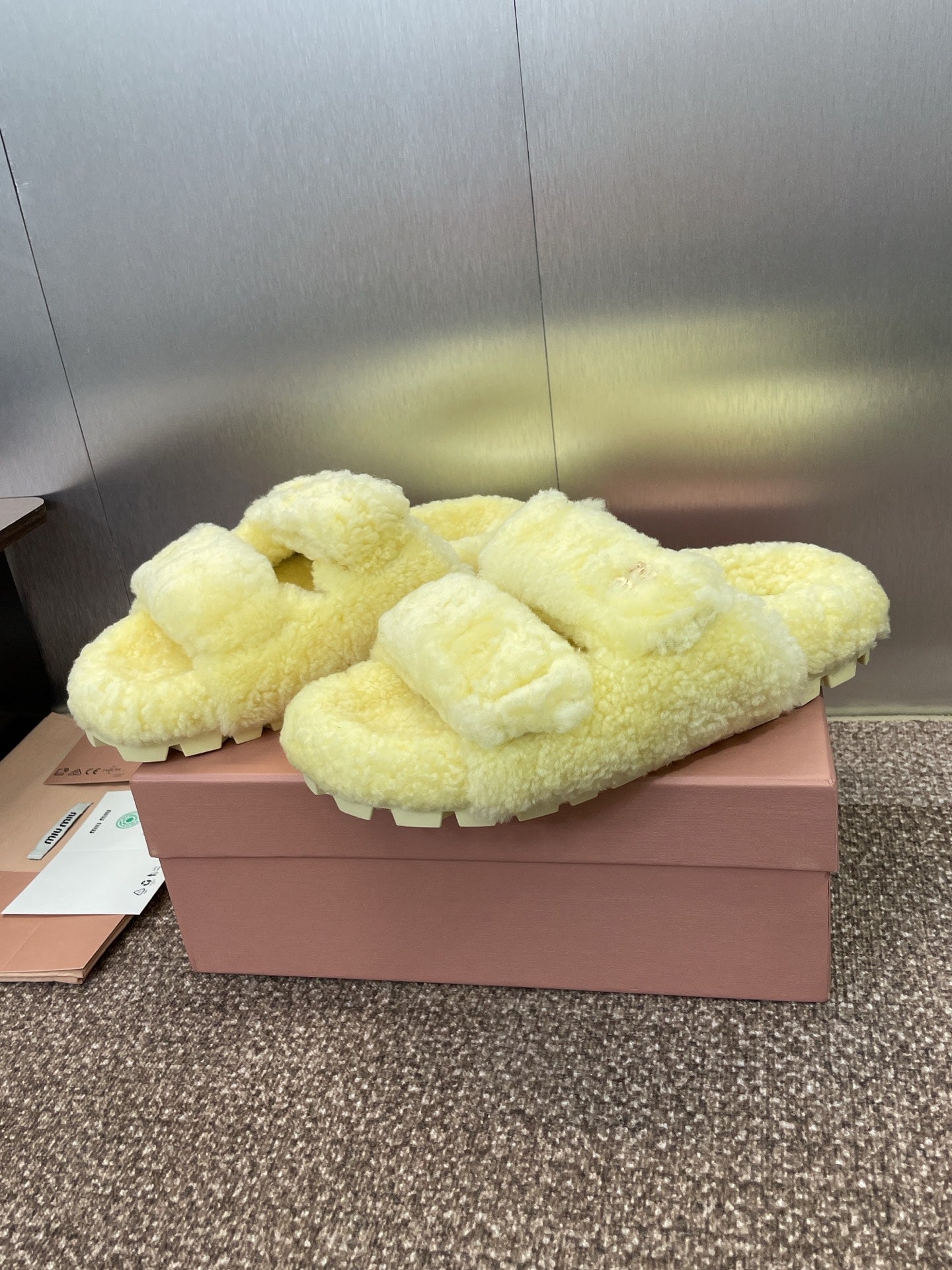 Miu Velcro Slippers Lemon Yellow Lambswool 508824