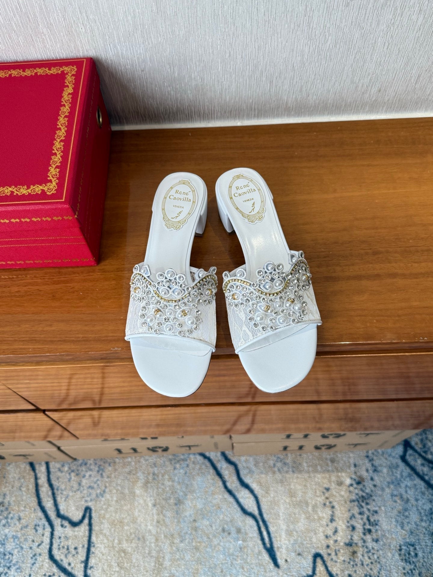 RC 25 Crystal Chandelier Sandals White Sheepskin 221963