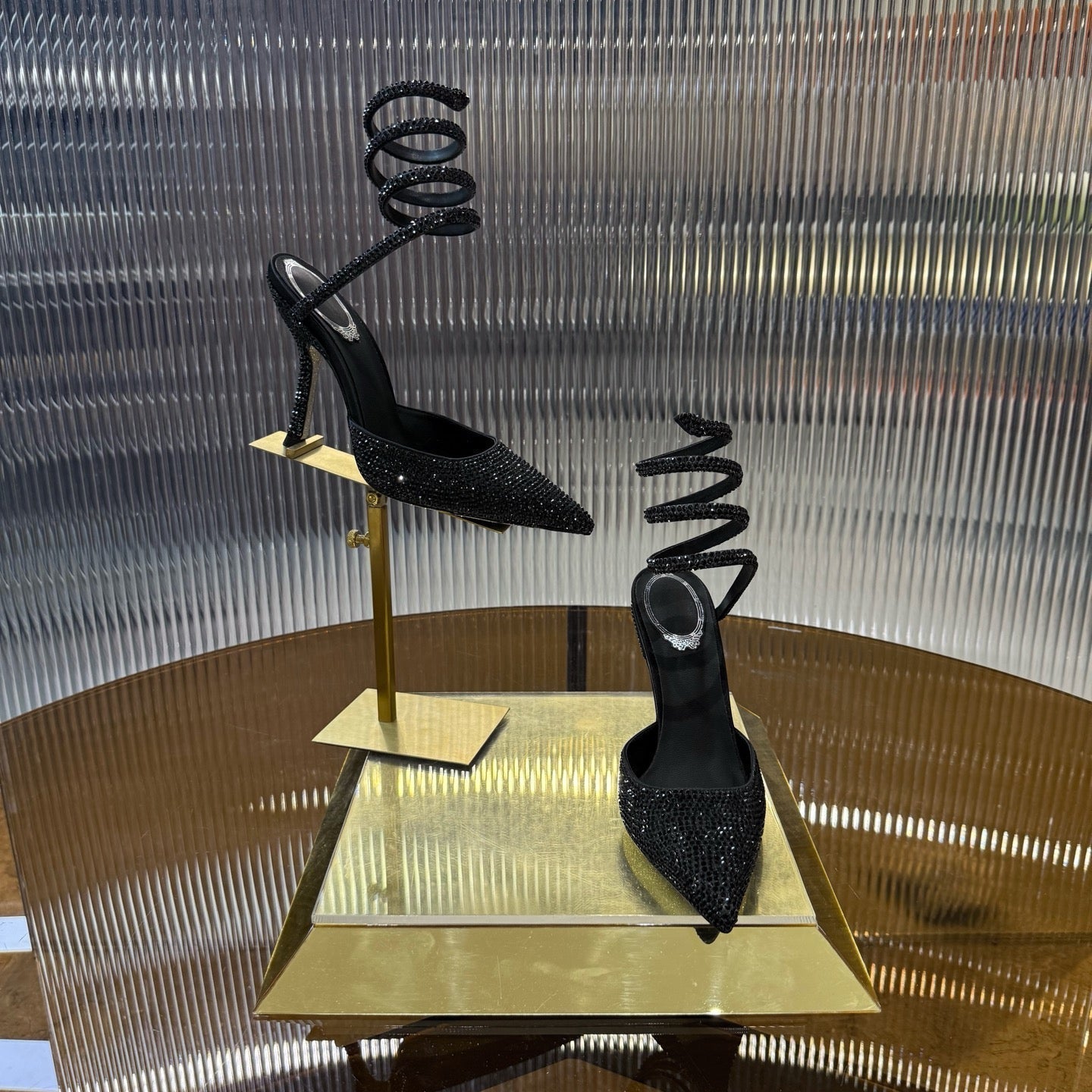RC 25C Single Sandals Black Sheepskin Rhinestone 339496