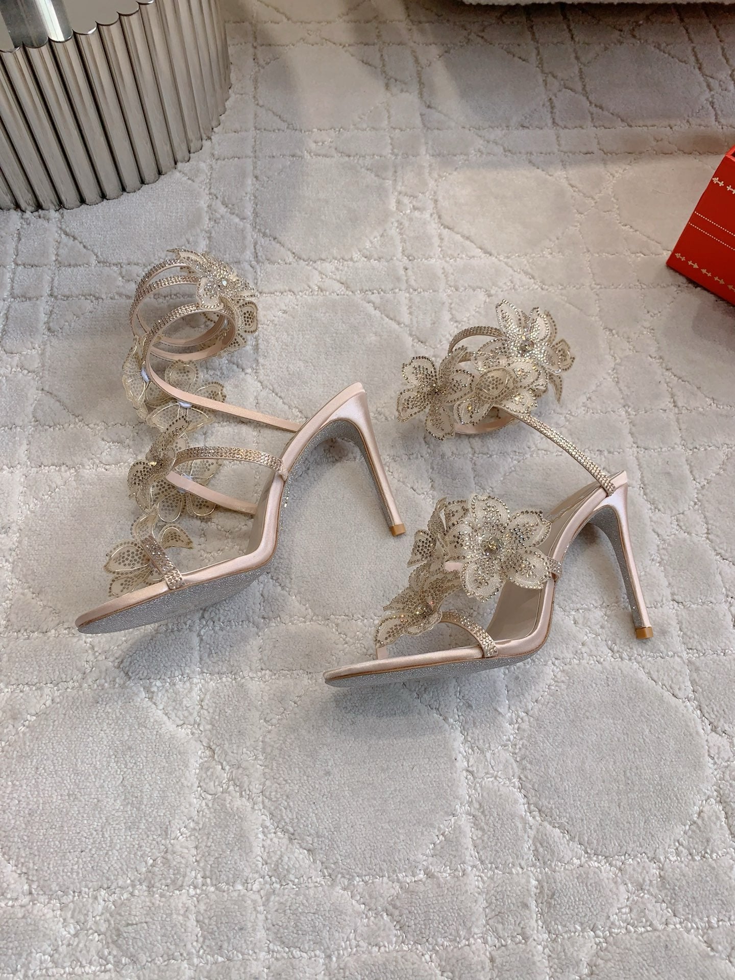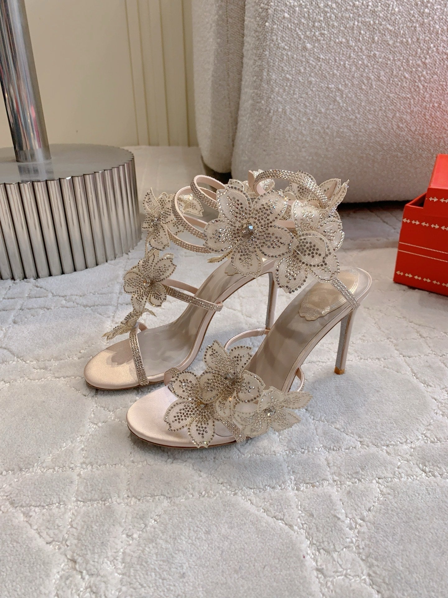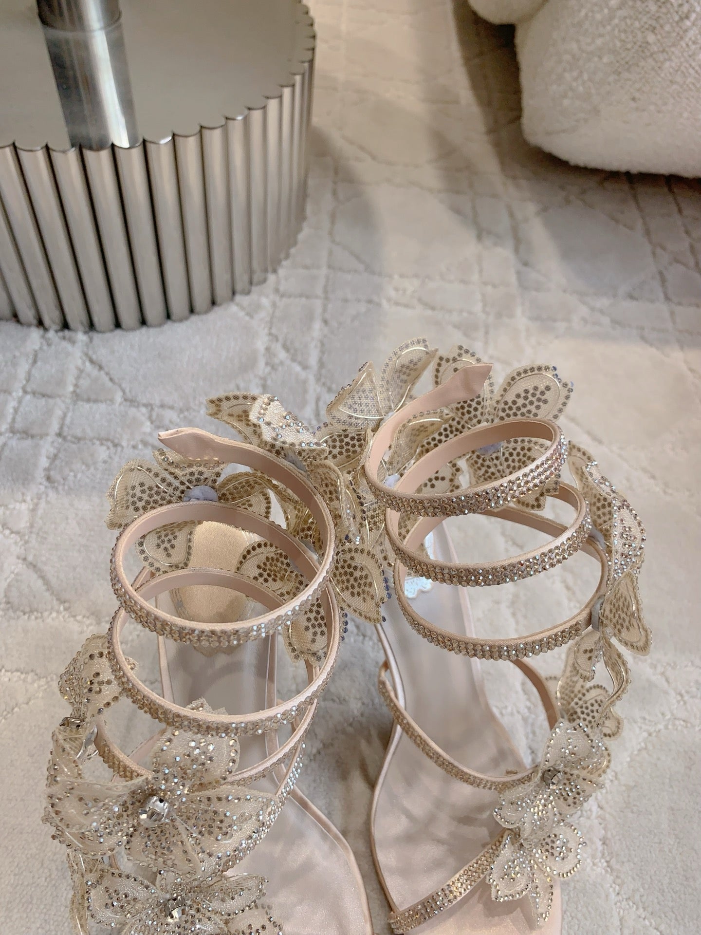 RC Flower Sandals Beige Sheepskin Rhinestones 328467