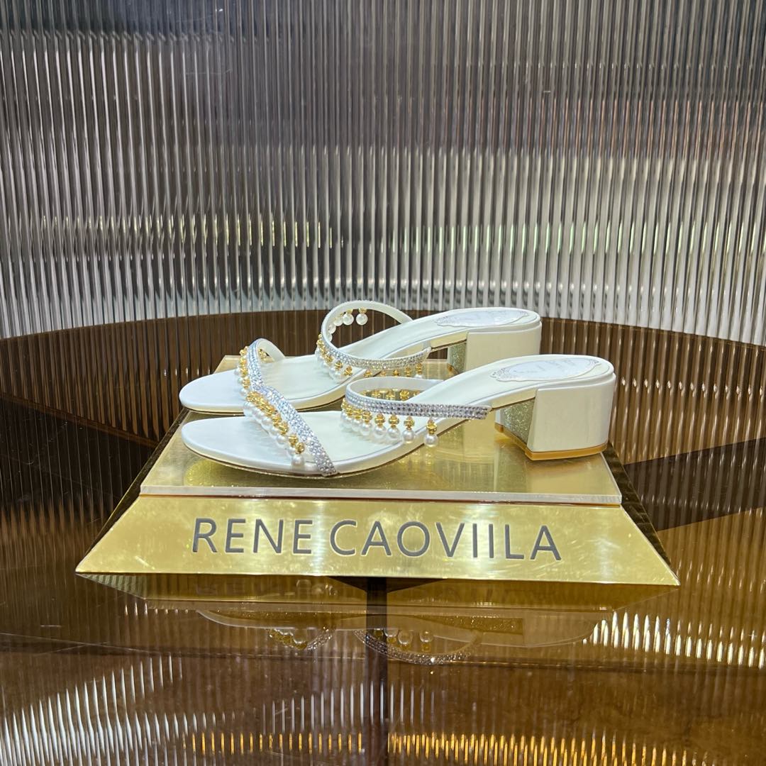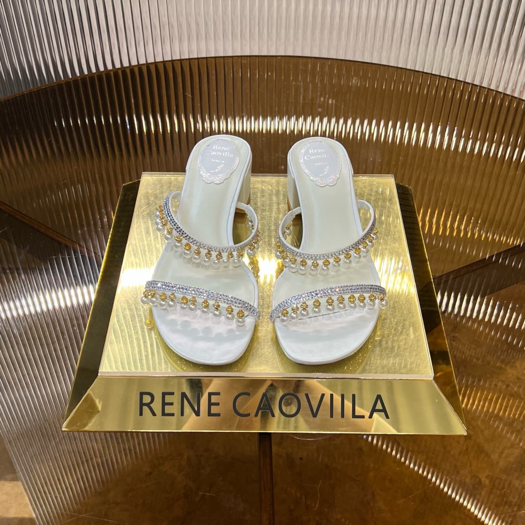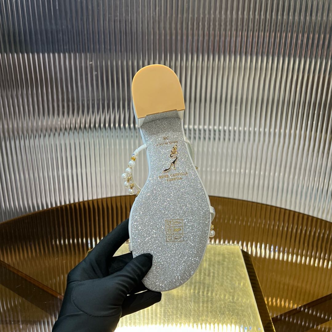 RC Gold Buckle Pearl Crystal Lamp Pendant Sandals 4.5 White Sheepskin 175008