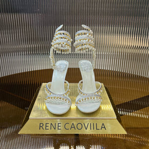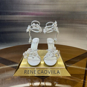 RC 25C Flower-Studded Diamond High-Heeled Sandals White Sheepskin 174905