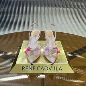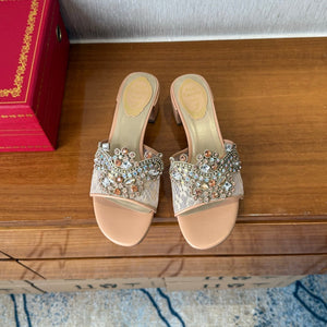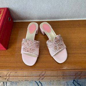 RC 25C Flower-Studded Diamond High-Heeled Sandals Pink Sheepskin 174913