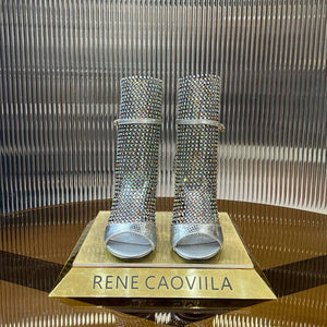 RC 25C High Heel Short Boots Mid-Tube Open-Toe Sandals Grey Sheepskin 174973