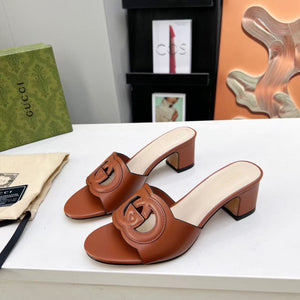 MID-HEEL 5 CM MULE IN BROWN CALFSKIN