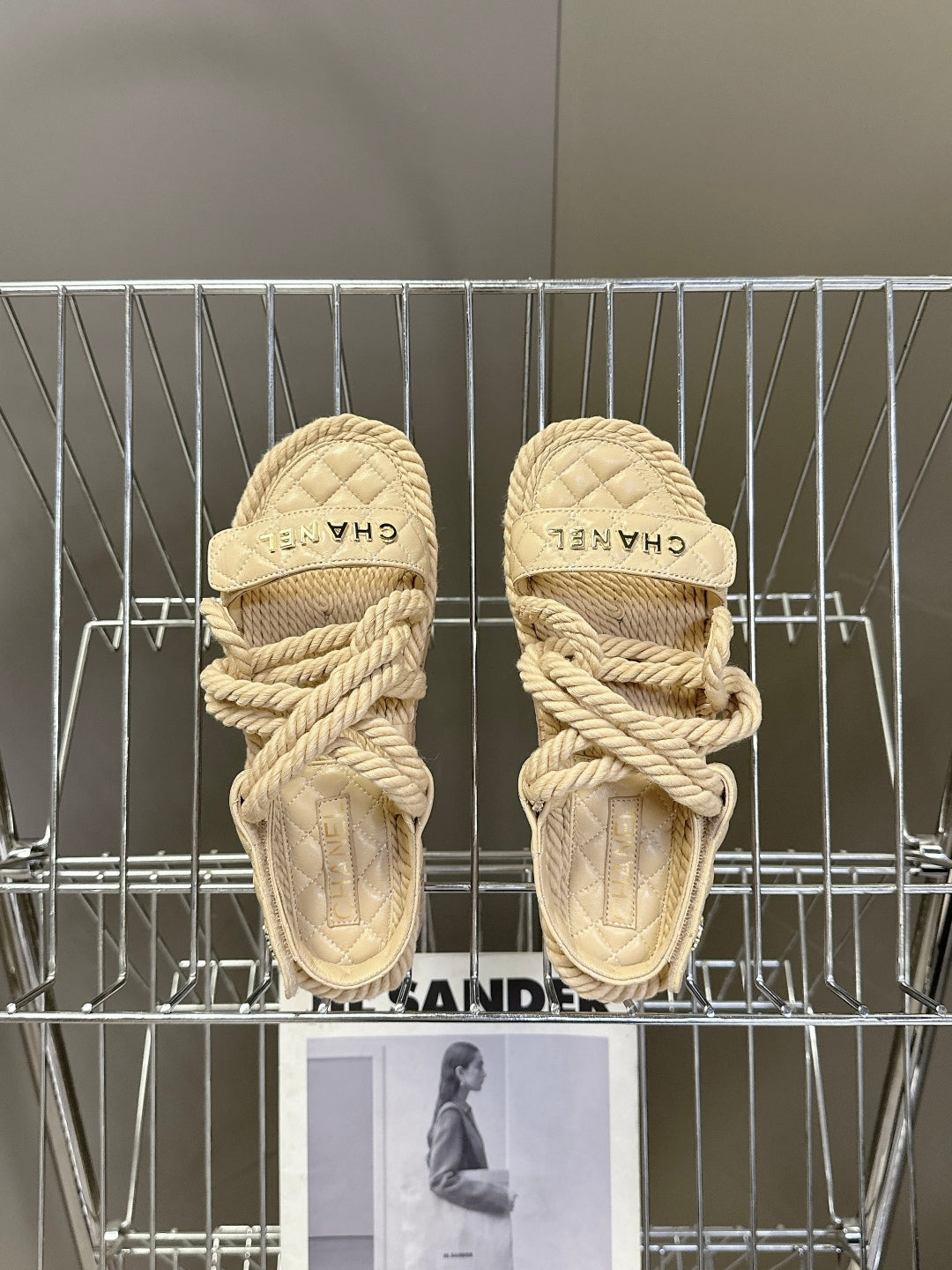 CC 25 Dad Sandals Beige Rope and Sheepskin 473370