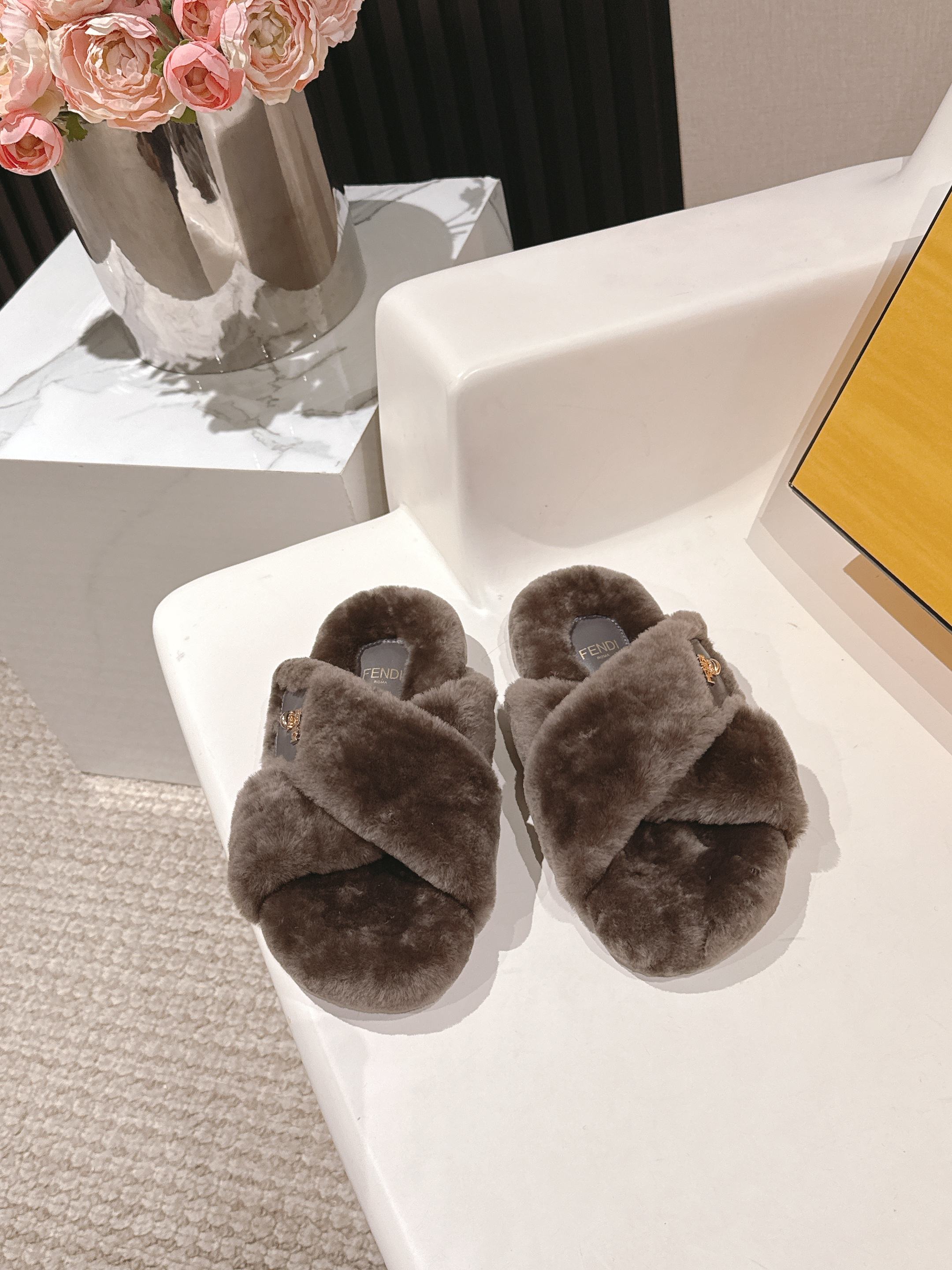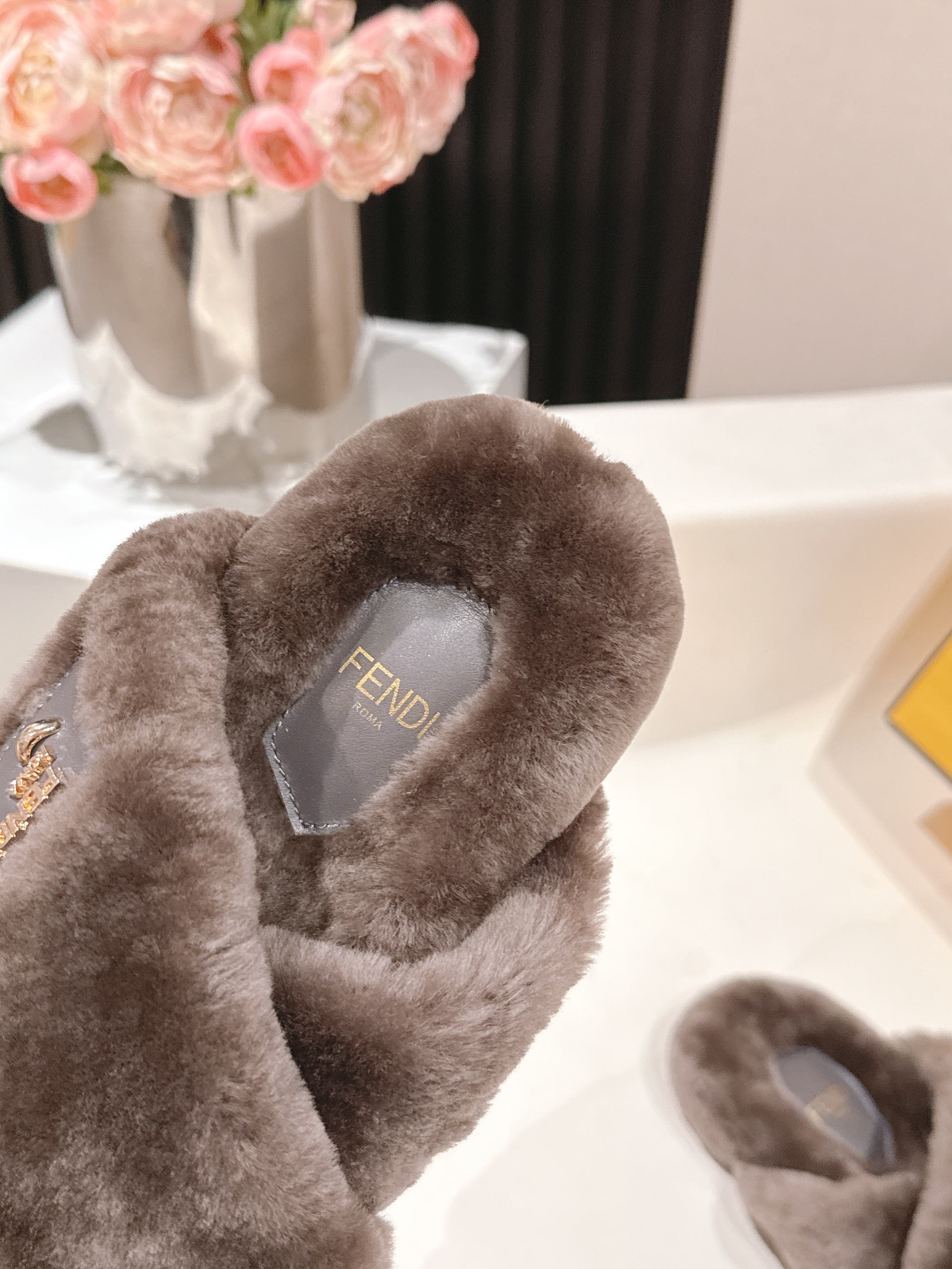Fendi F013 2025ss Fluffy Slippers Brown Lambswool 467195