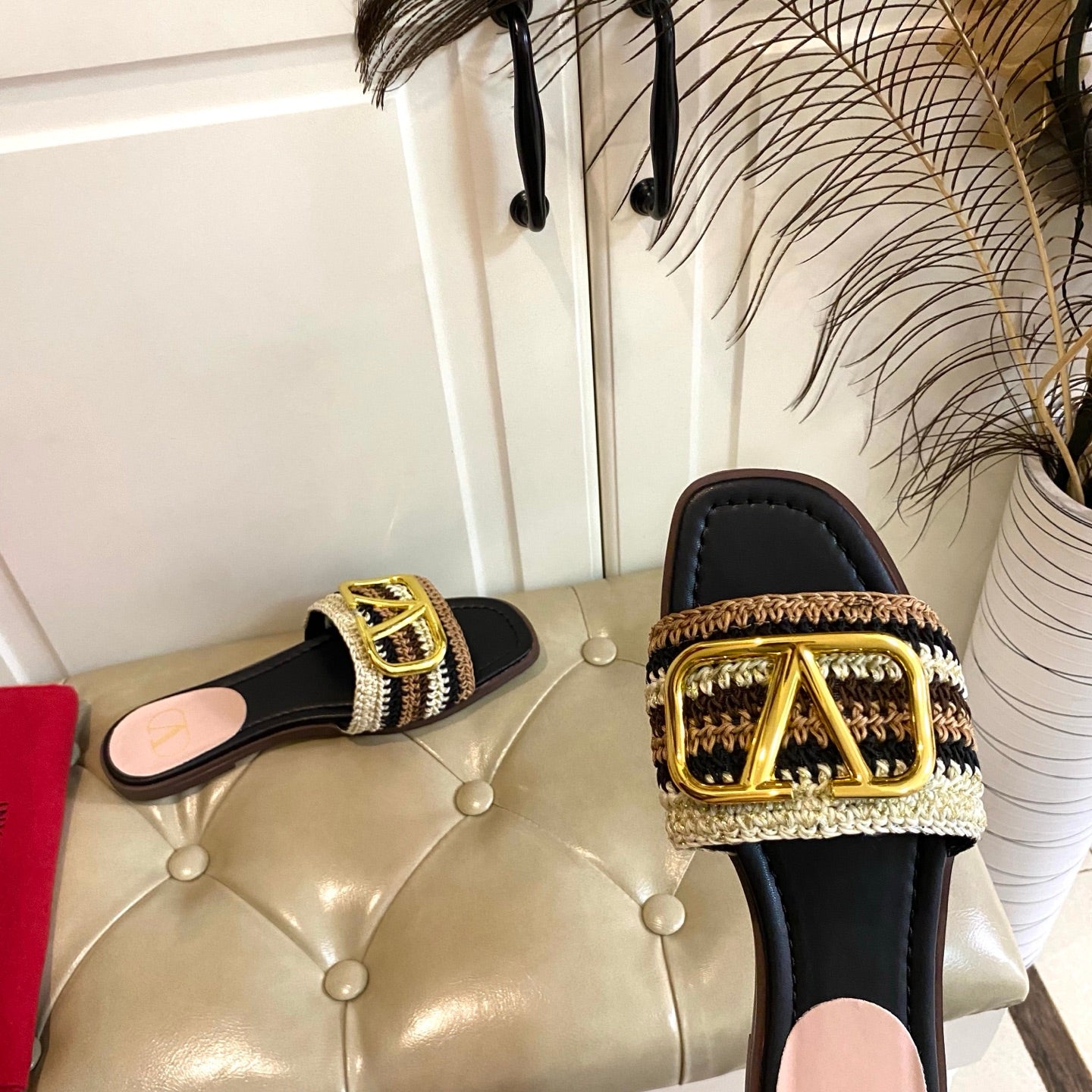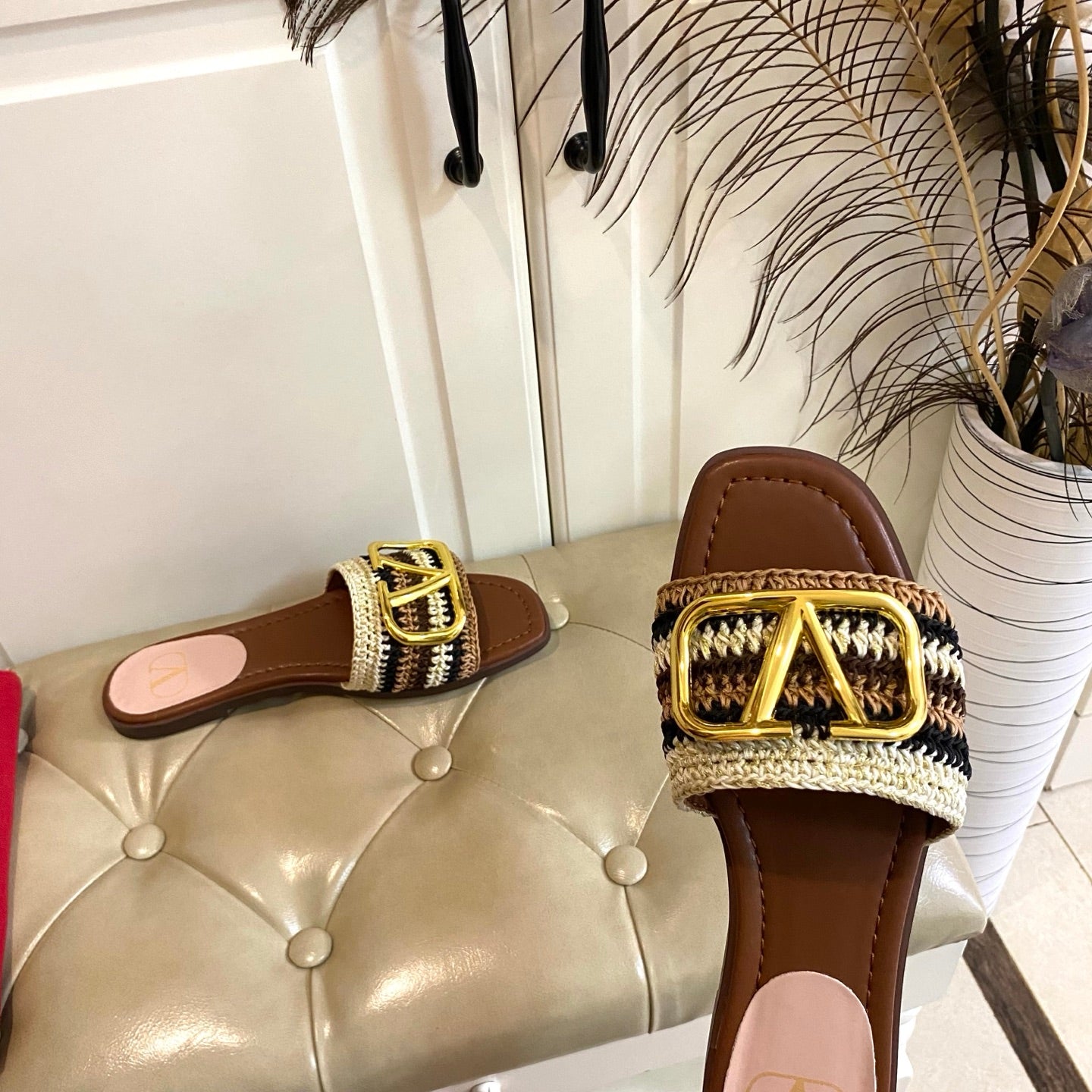 Vlogo Signature Slide Sandal 10mm With Crochet Embroidery