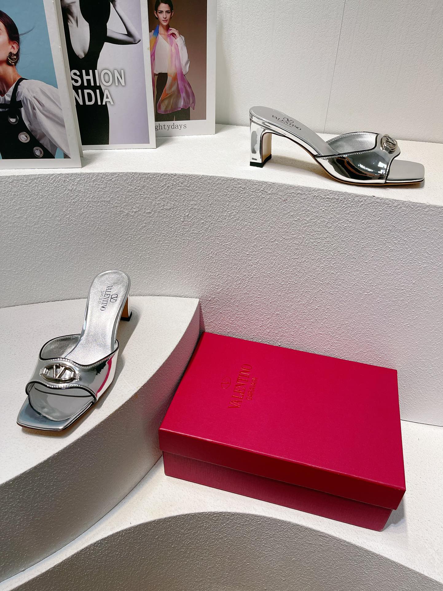 VT Mid Heel Mule Sandal Silver Sheepskin 292765