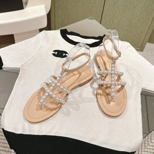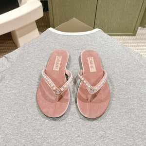 CC 25ss Pearl Thong Sandal Beige Velvet 461639