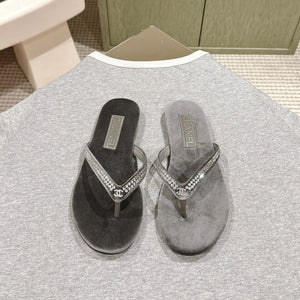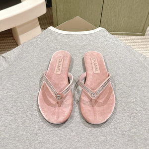 CC 25ss Rhinestone Thong Sandal Beige Velvet 461636