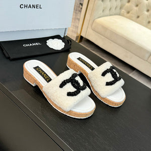 Chanel 25 Slipper White Smooth Lambwool 465603