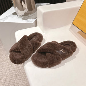 Fendi F013 2025ss Fluffy Slippers Brown Lambswool 467196