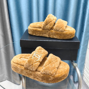 CC DAD SANDAL MULE IN CAMEL BROWN FLEECE WITH GOLD HARDWARE