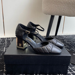 Chanel 25 High Heel Pump Black Sheepskin 465594