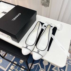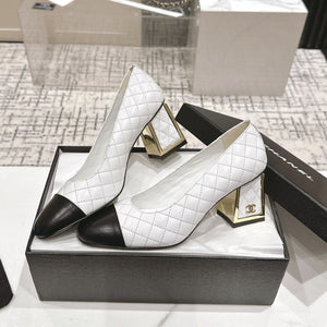 Chanel 25 High Heel Pump White Black Sheepskin 465595