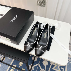 CC Slingback With White Contrast Stitching Black Lambskin 476707