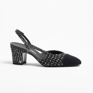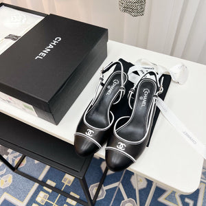 CC Slingback Heels With White Contrast Stitching Black Lambskin 476710