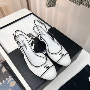 CC Slingback Heels With Black Contrast Stitching White Lambskin 476712