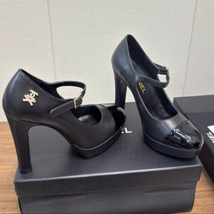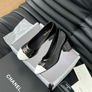 Chanel 25 Platform Thick Heel Shoe White Black Sheepskin