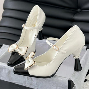 CC High Heels 65mm Black Bow Tie Chain Lambskin