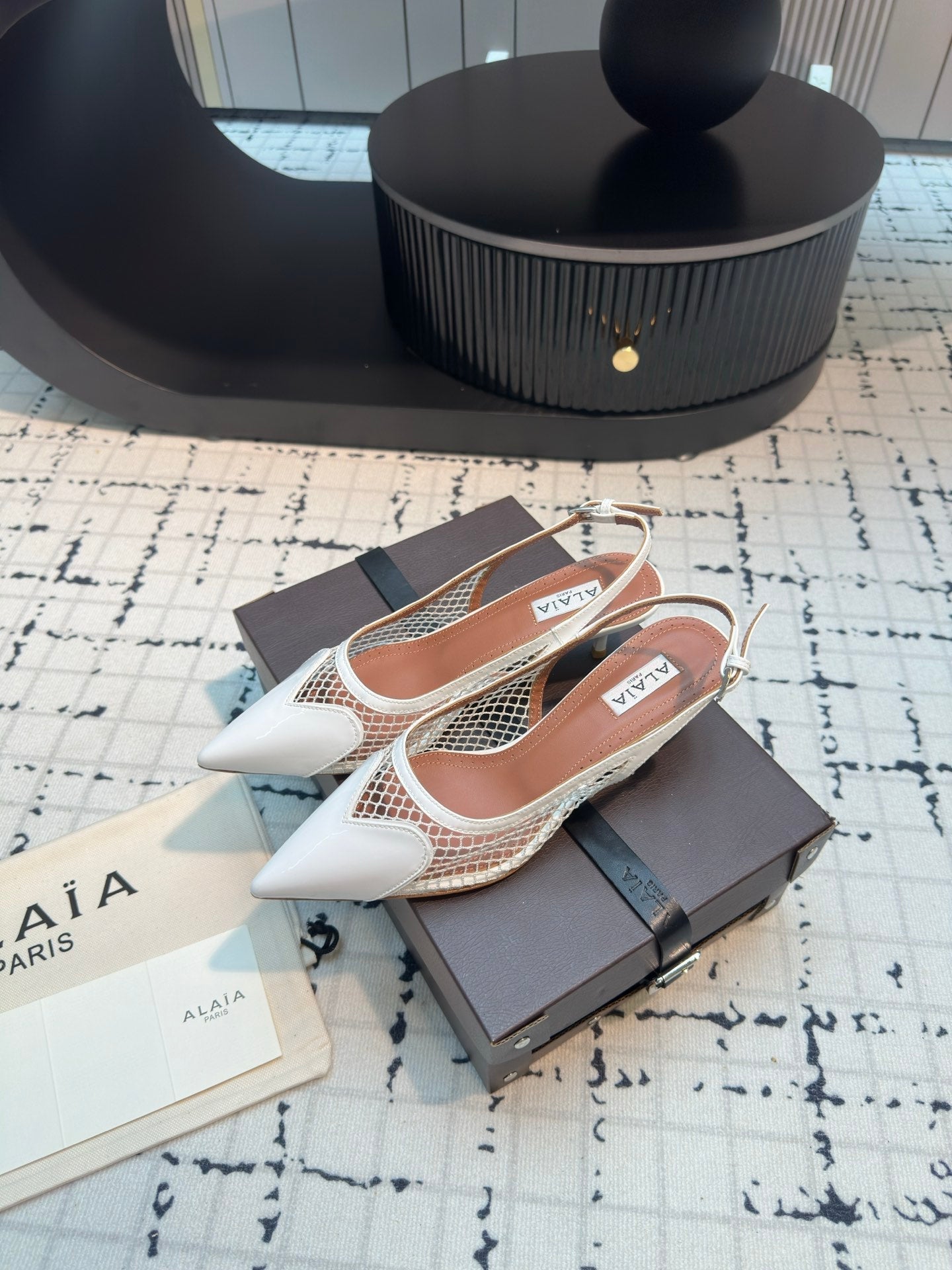 ALAIA SLINGBACKS 5 CM IN WHITE CALFSKIN WITH MESH