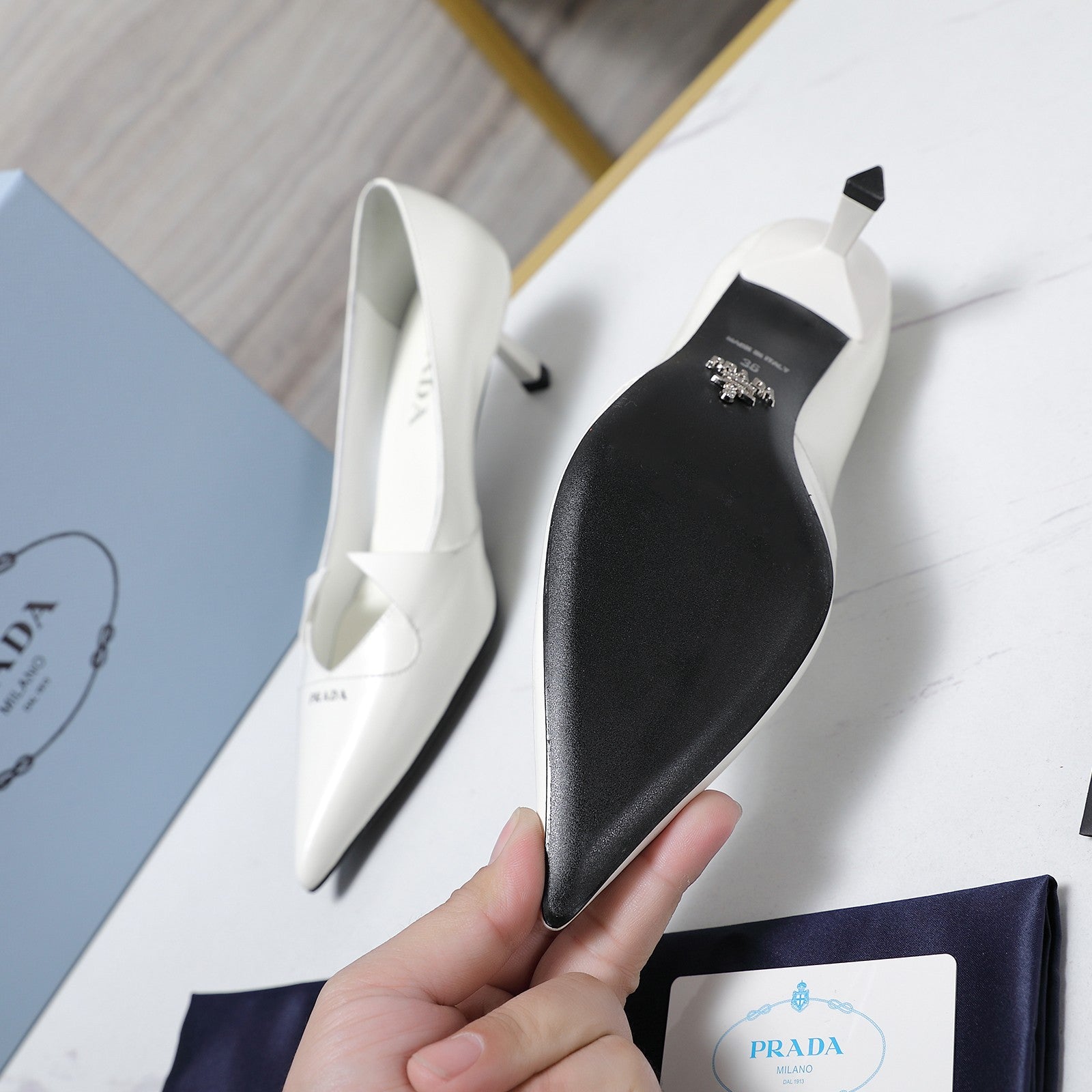 Prada Two-Tone Brushed Pumps 55mm White Cowhide 456262