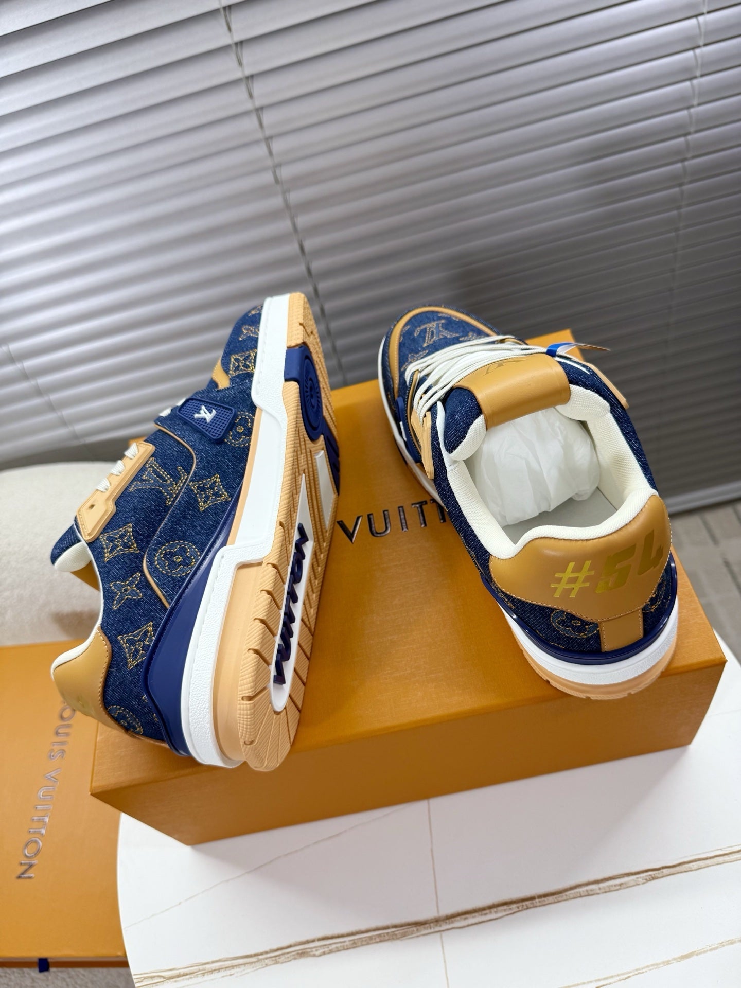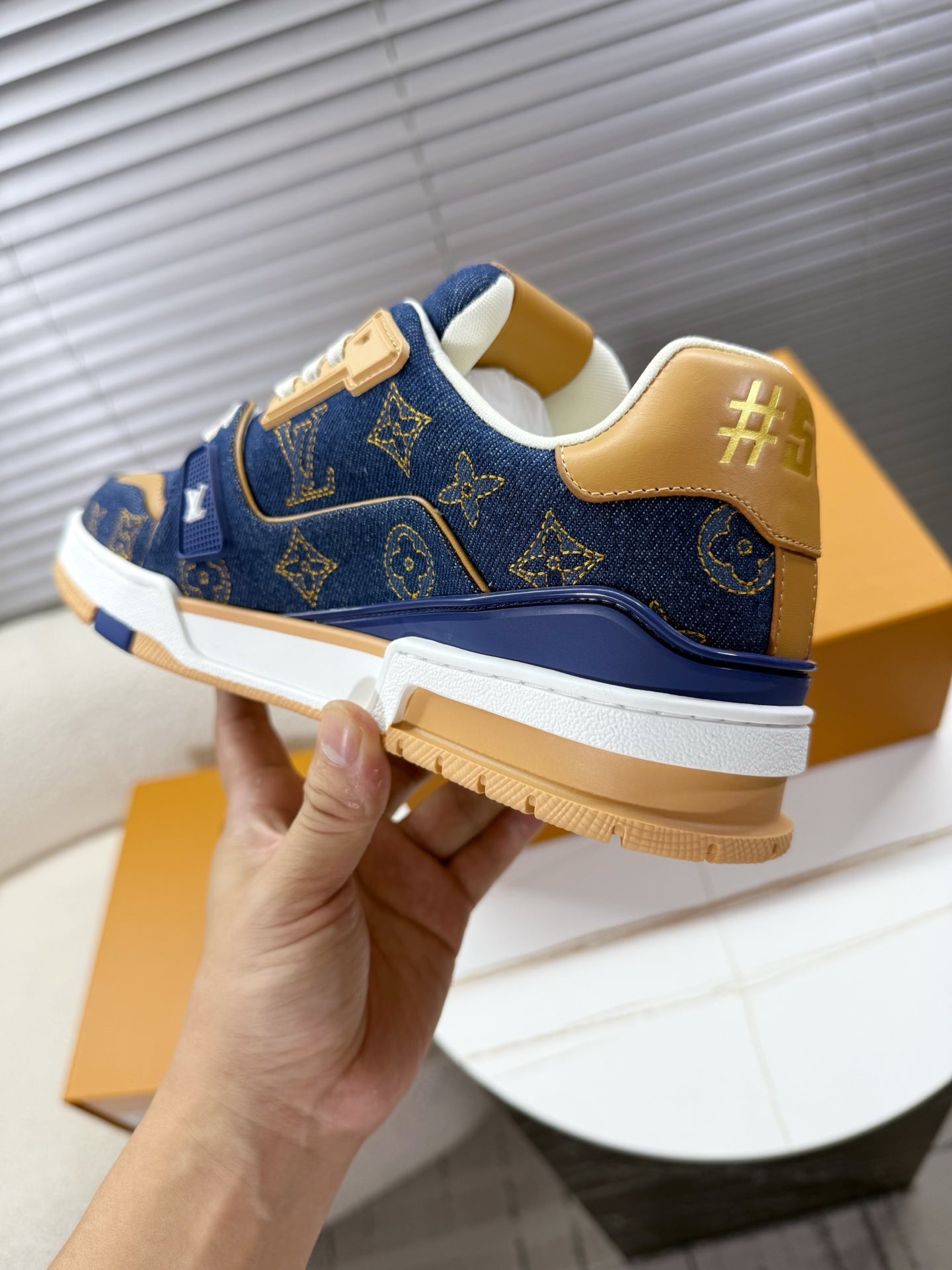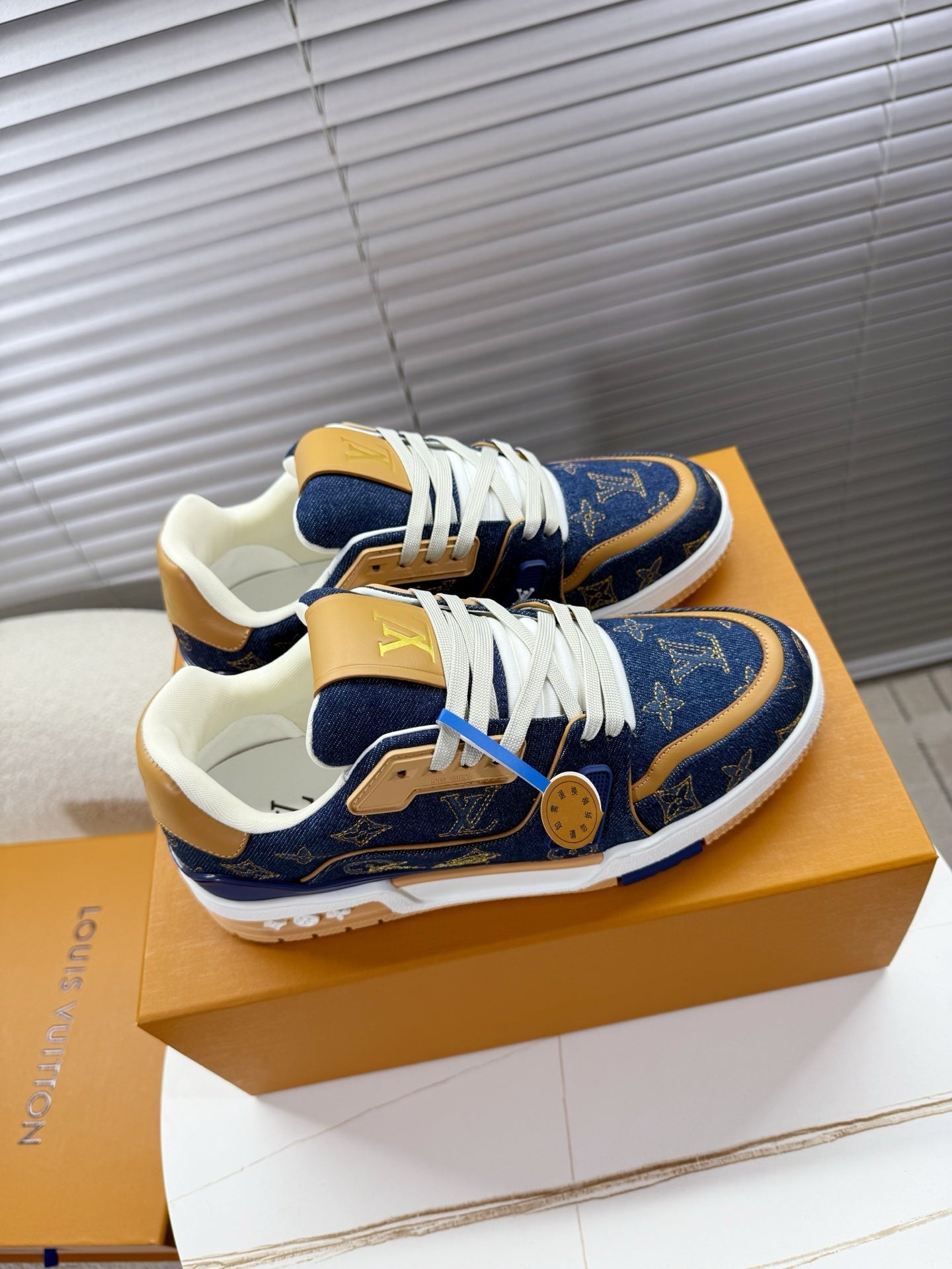 LV 1AJ360 Trainer Blue Monogram-embroidered Denim Cafskin 511760