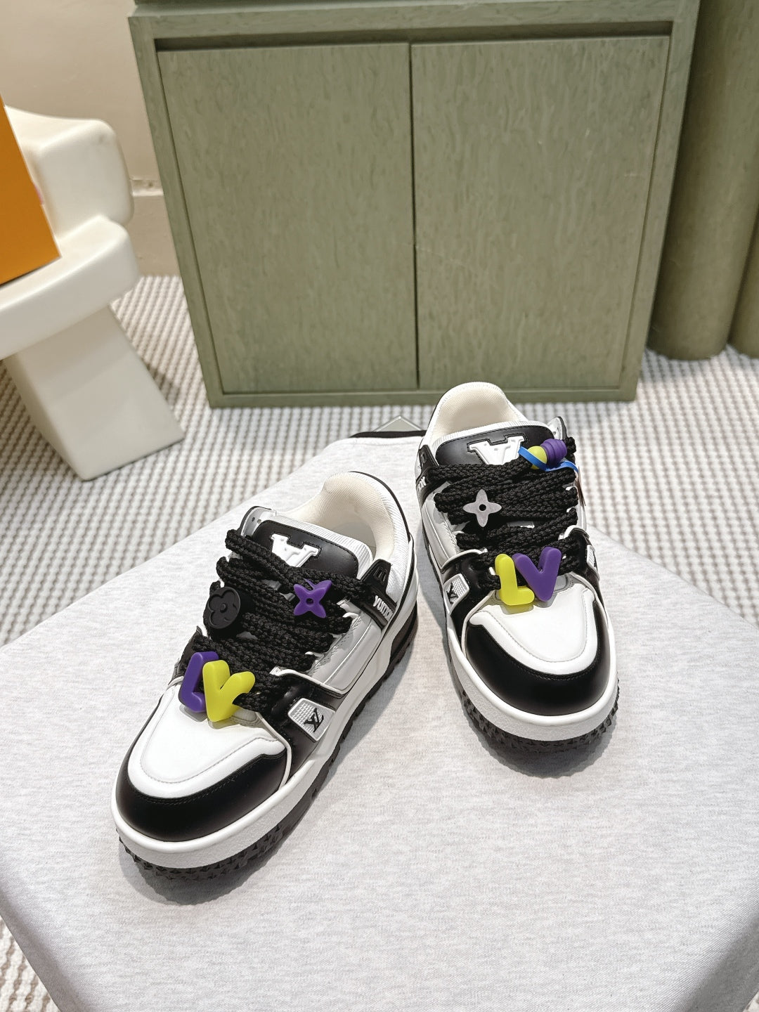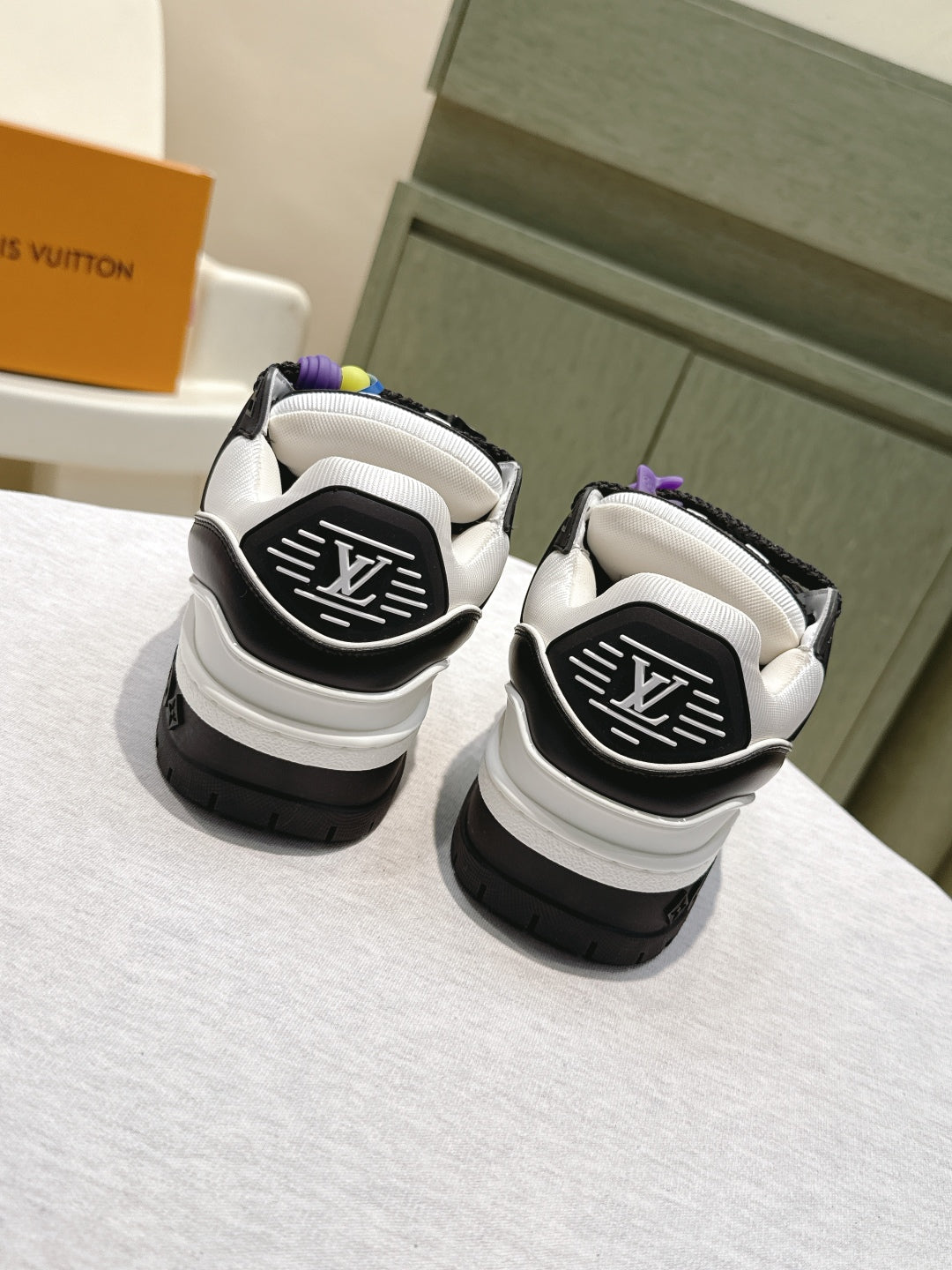 LV Trainer Maxi Sneakers Black Mix White Calfskin Mesh 515195