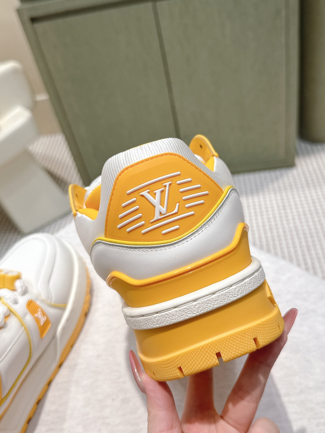 LV Trainer Maxi Sneakers White Mix Yellow Calfskin Mesh 515197
