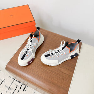 GG Screener Trainer Sneakers White Light Grey Cowhide Frabic 502168