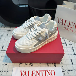 Valentino Netrunner In White Mix Light Grey Suede And Mesh Fabric 812479
