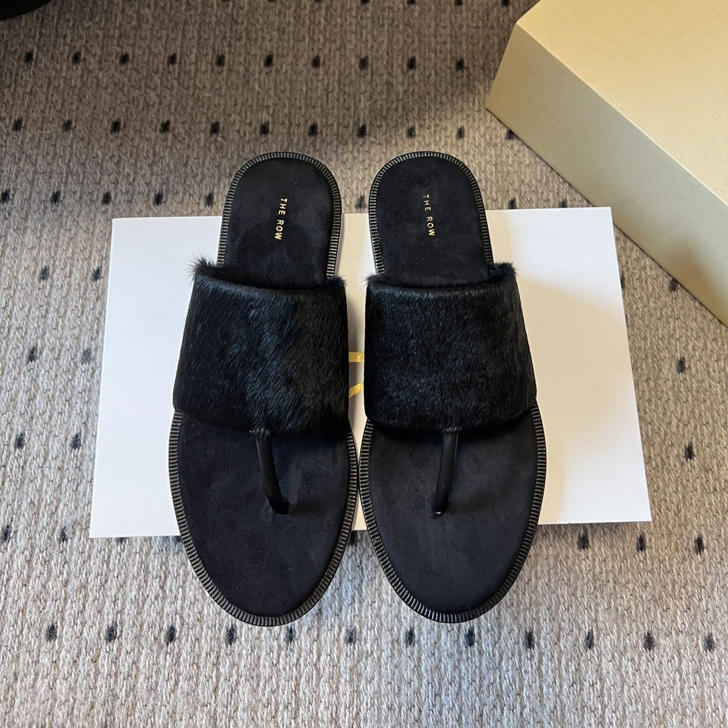 Signum Flat Sandal in Black Sheepskin And Horse Hair 282424