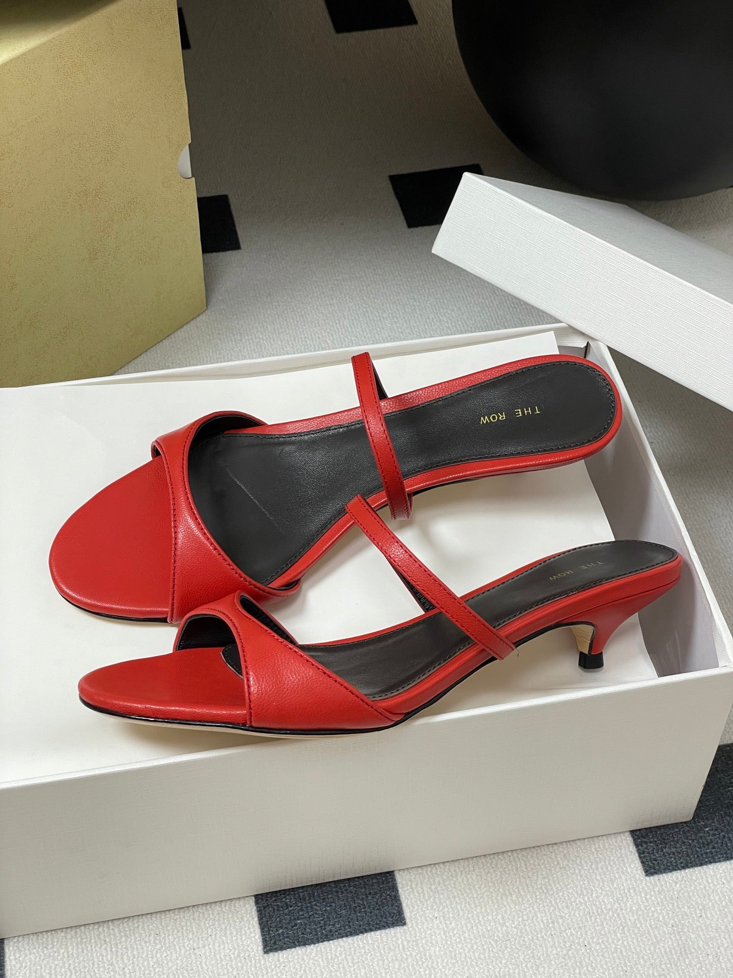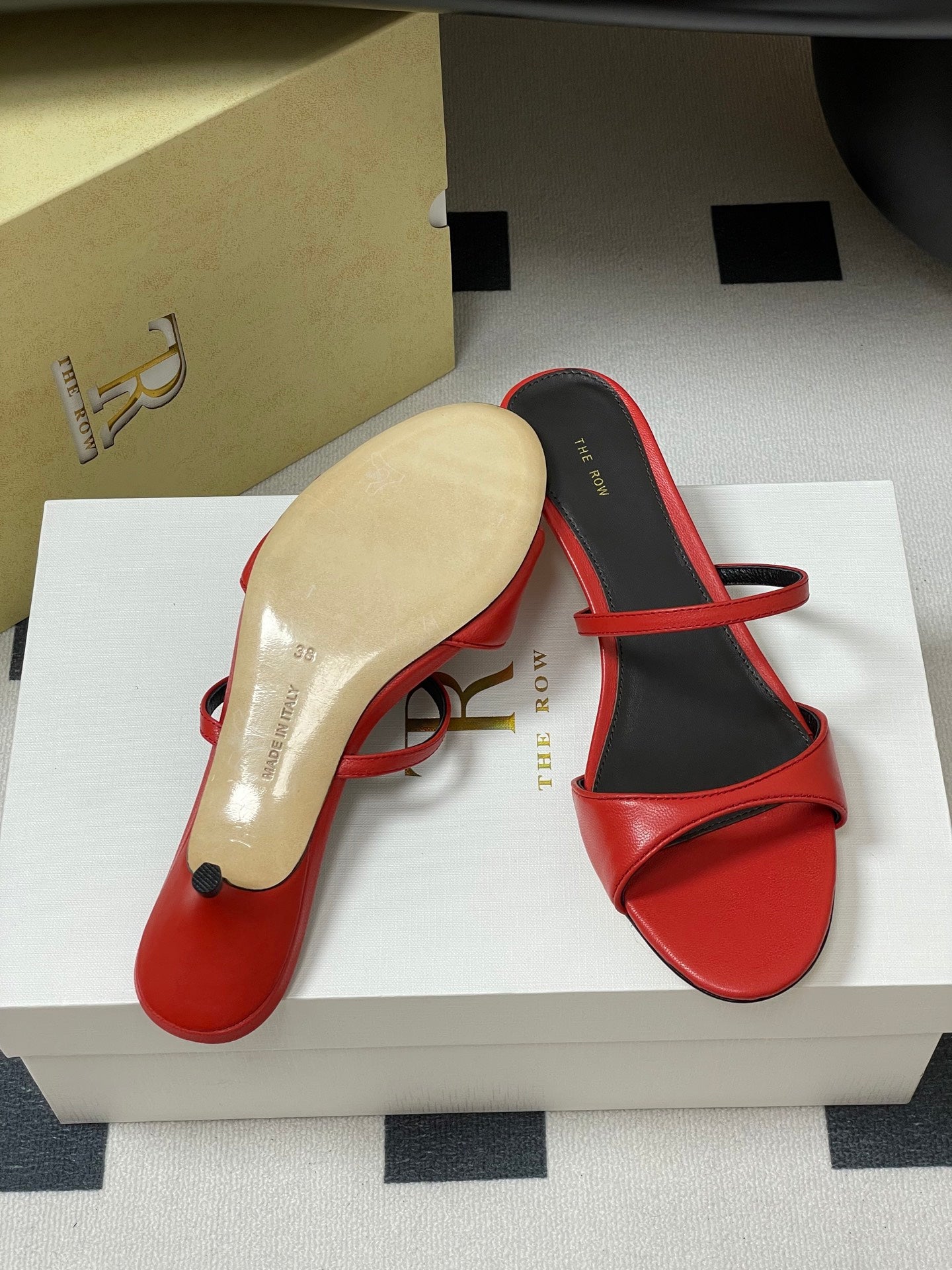 The Row 25S Strap High Heel Mule Sandals 35mm Red Sheepskin 286214