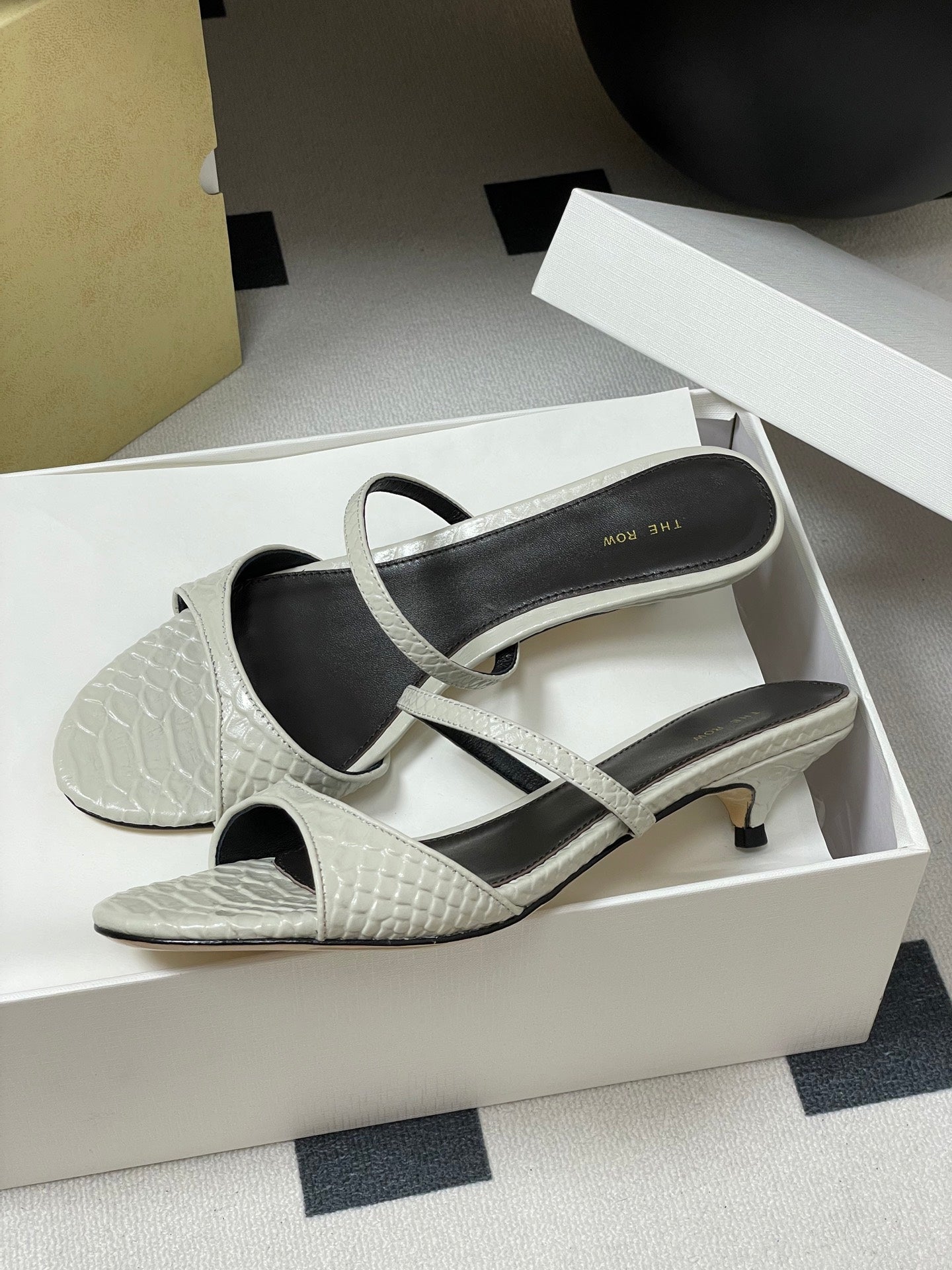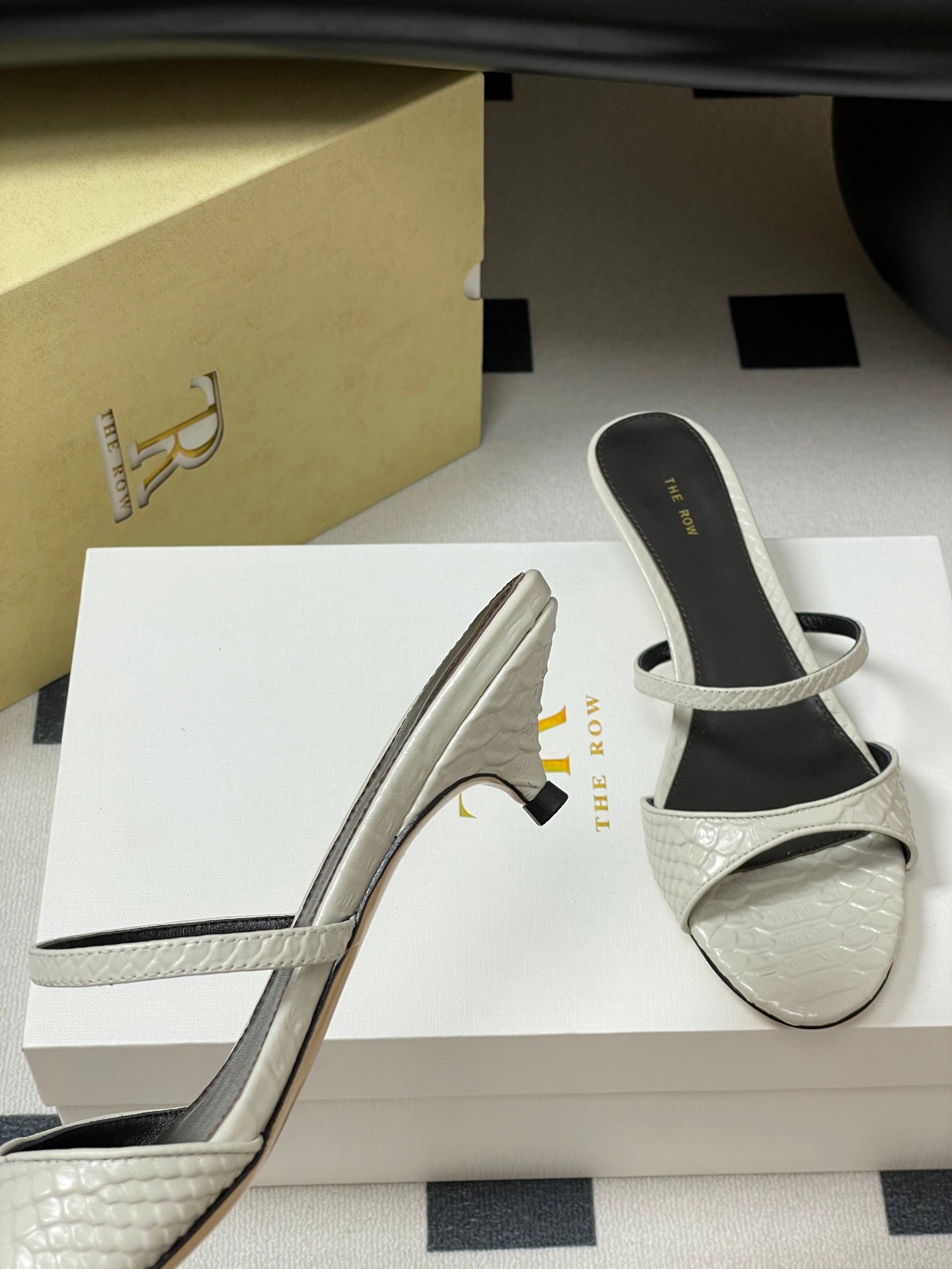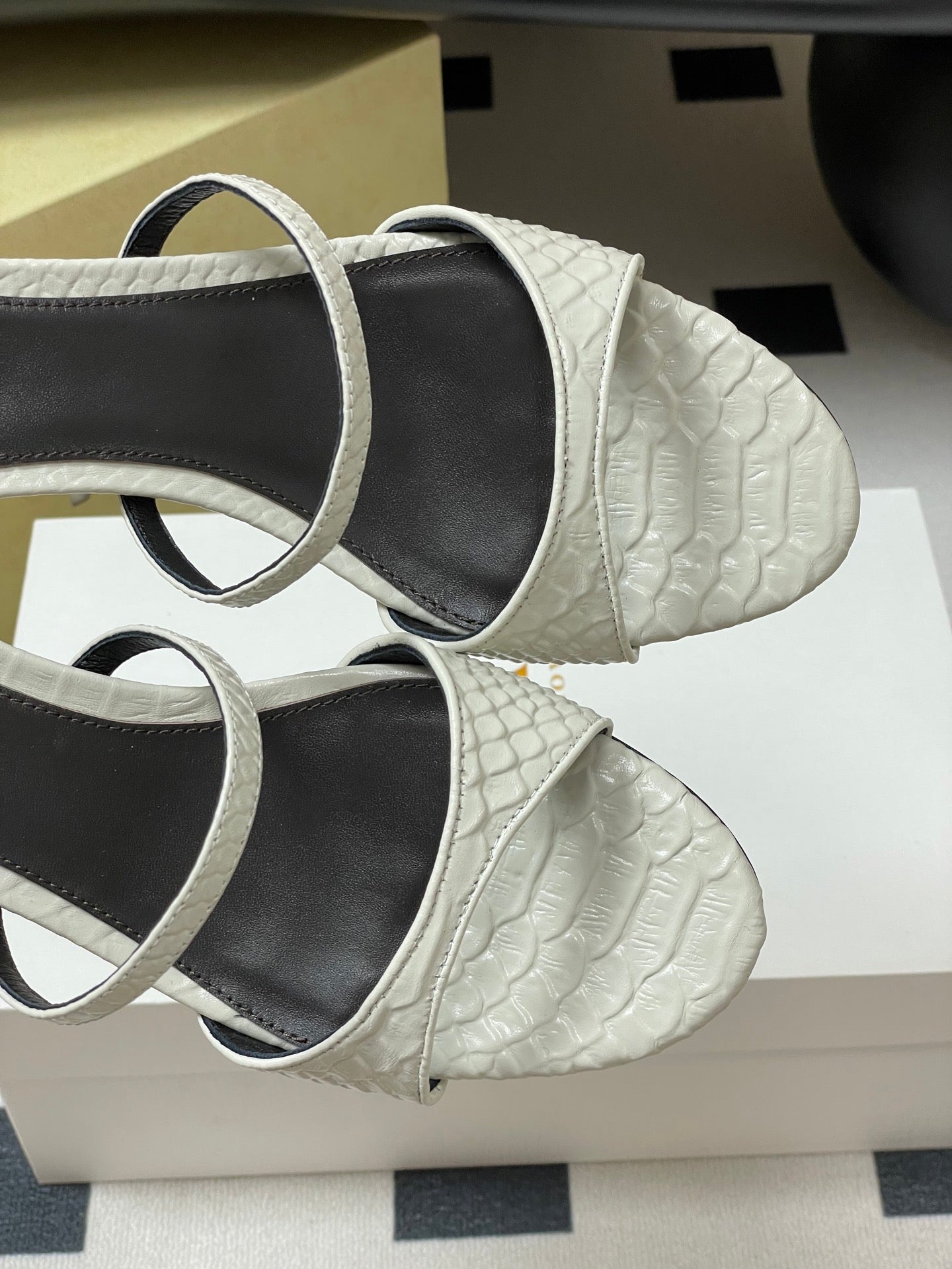 The Row 25S Strap High Heel Mule Sandals 35mm White Snake Pattern Cowhide 286212