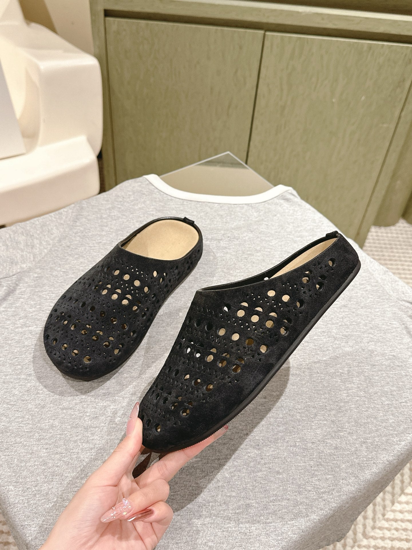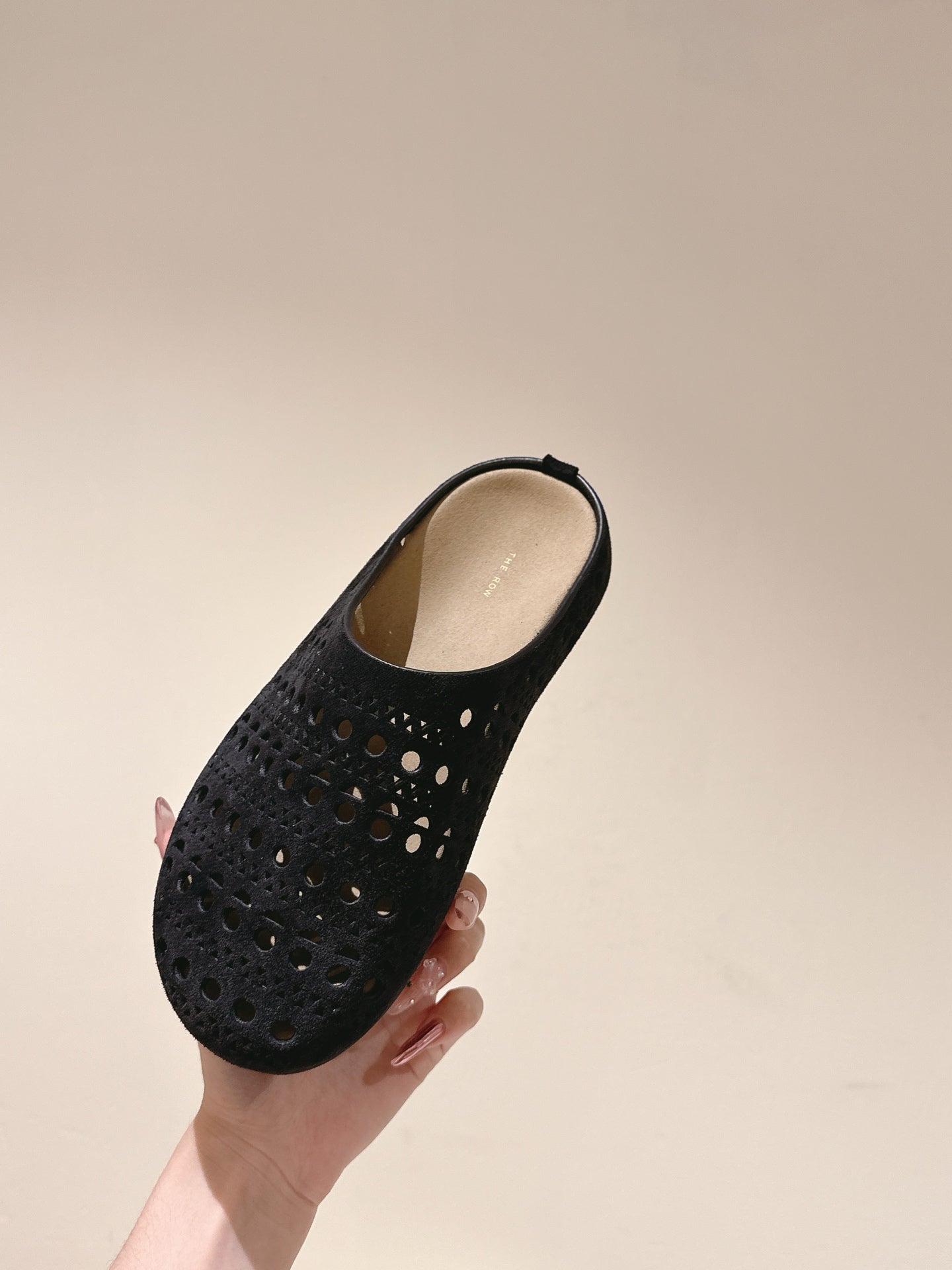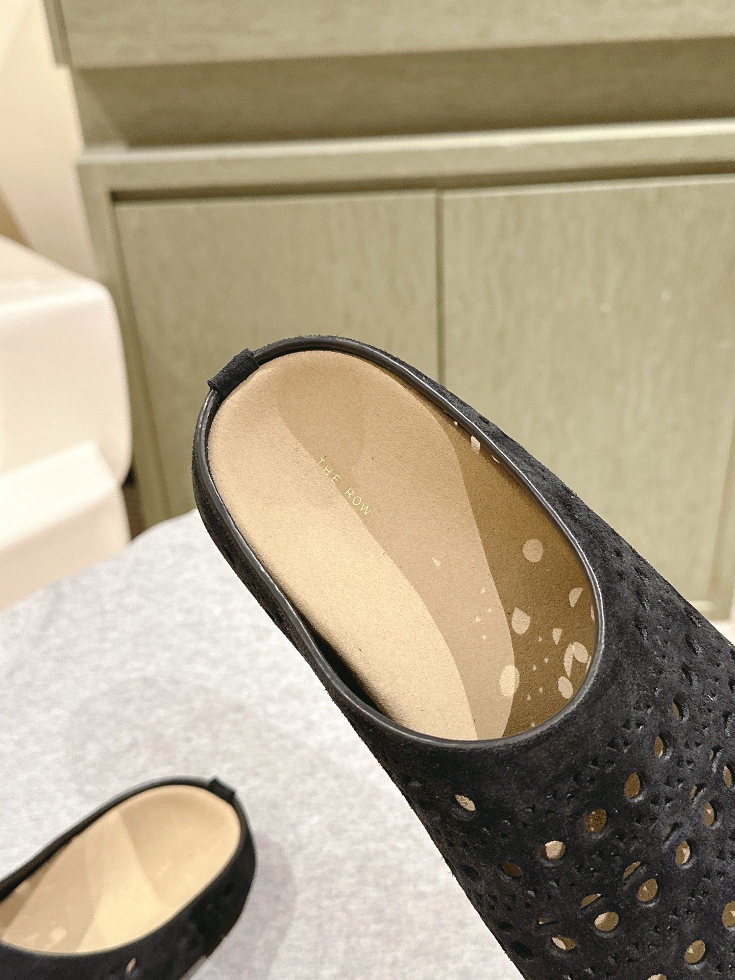 The Row 25ss Perforated Mule 20mm Black Suede 451273