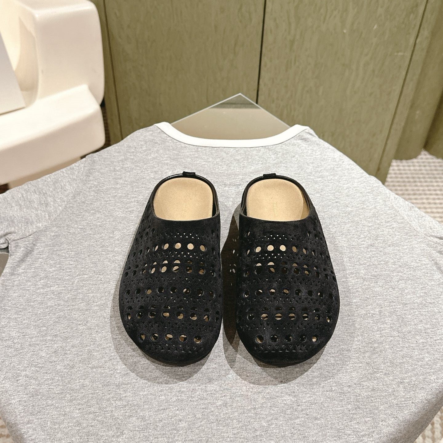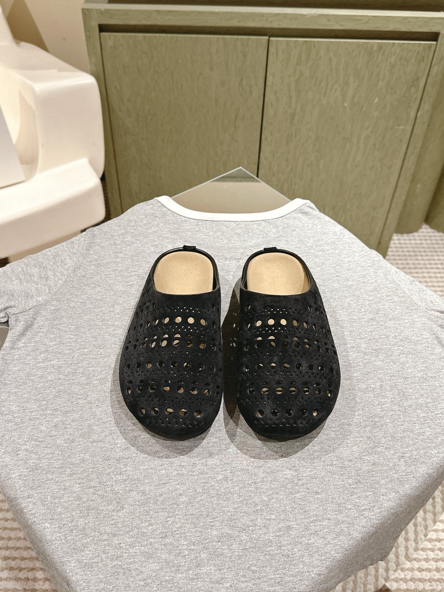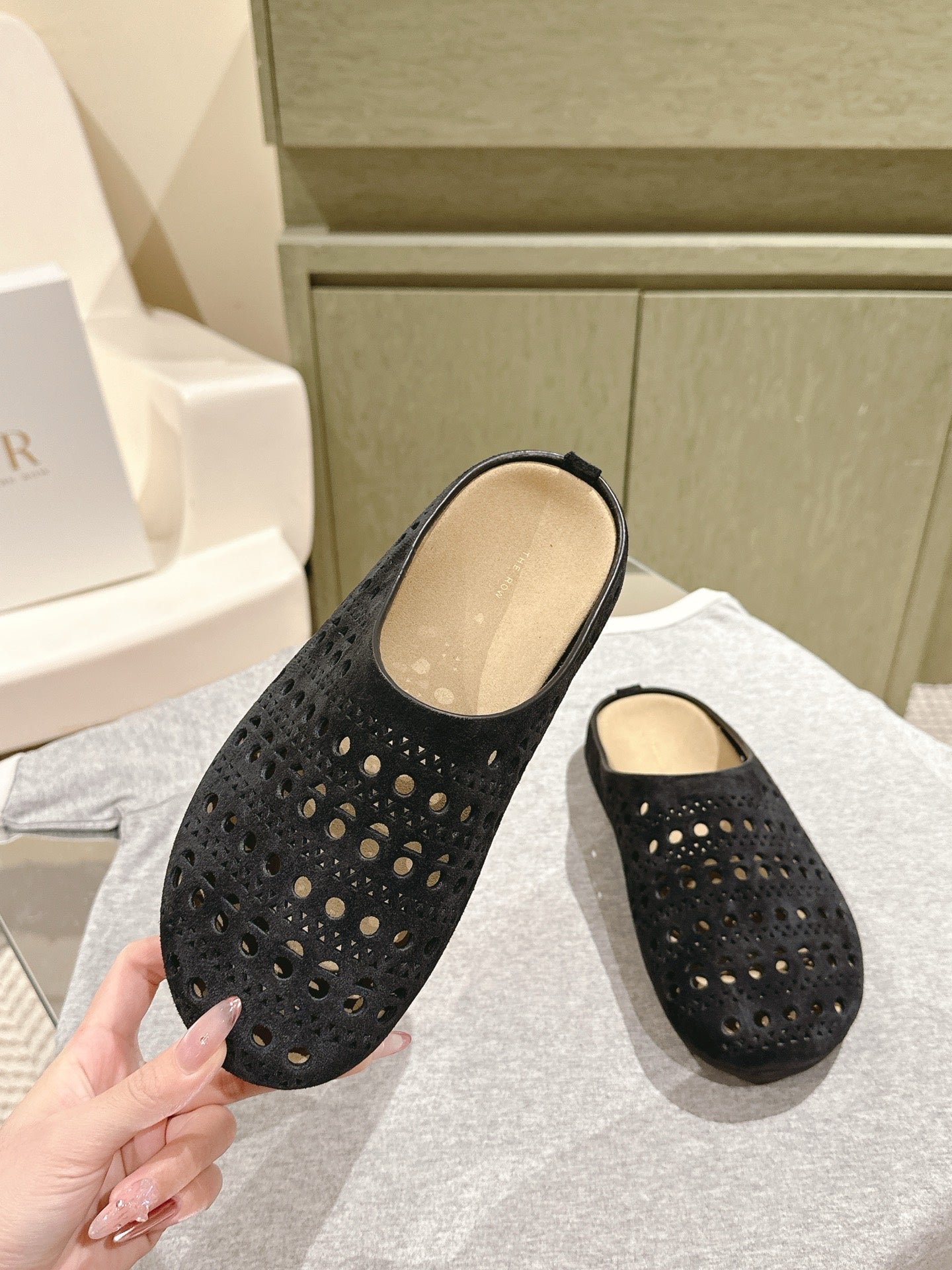The Row 25ss Perforated Mule 20mm Black Suede 451273