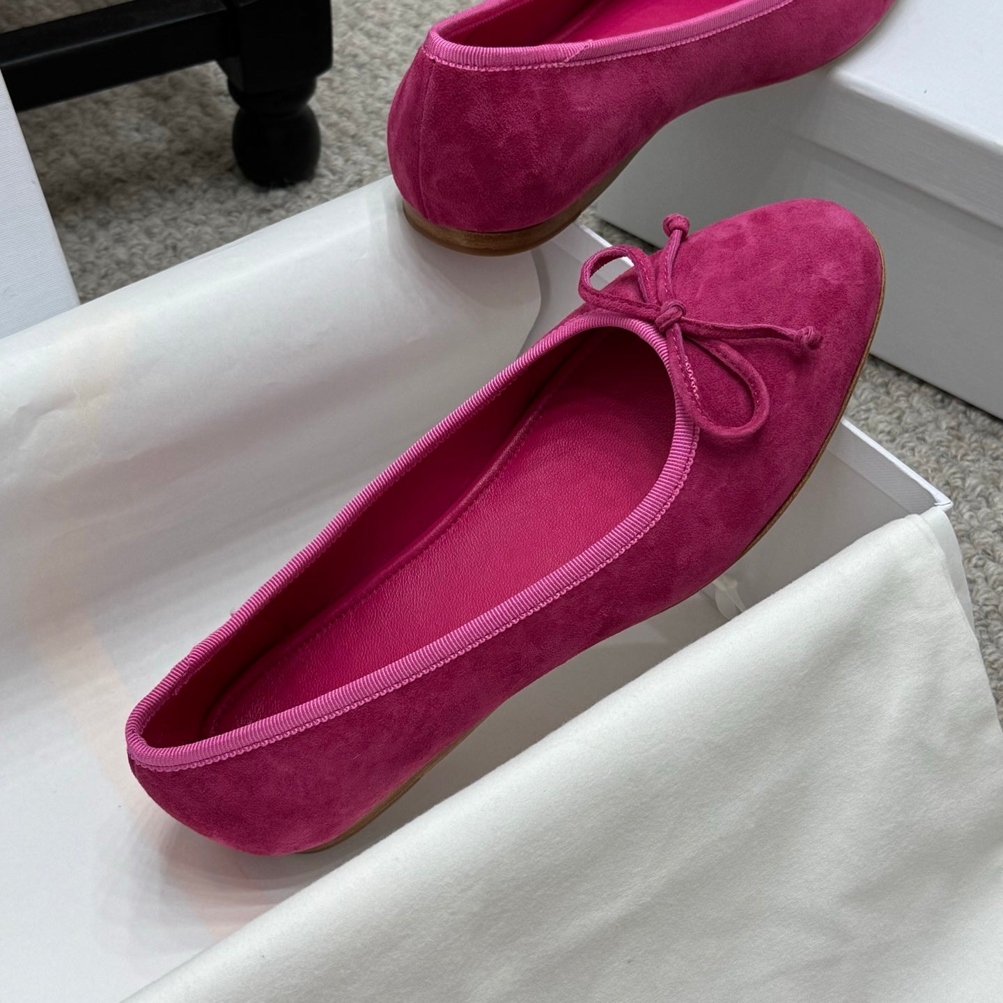 The Row Ballet Flats Bow Hot Pink Suede 290735